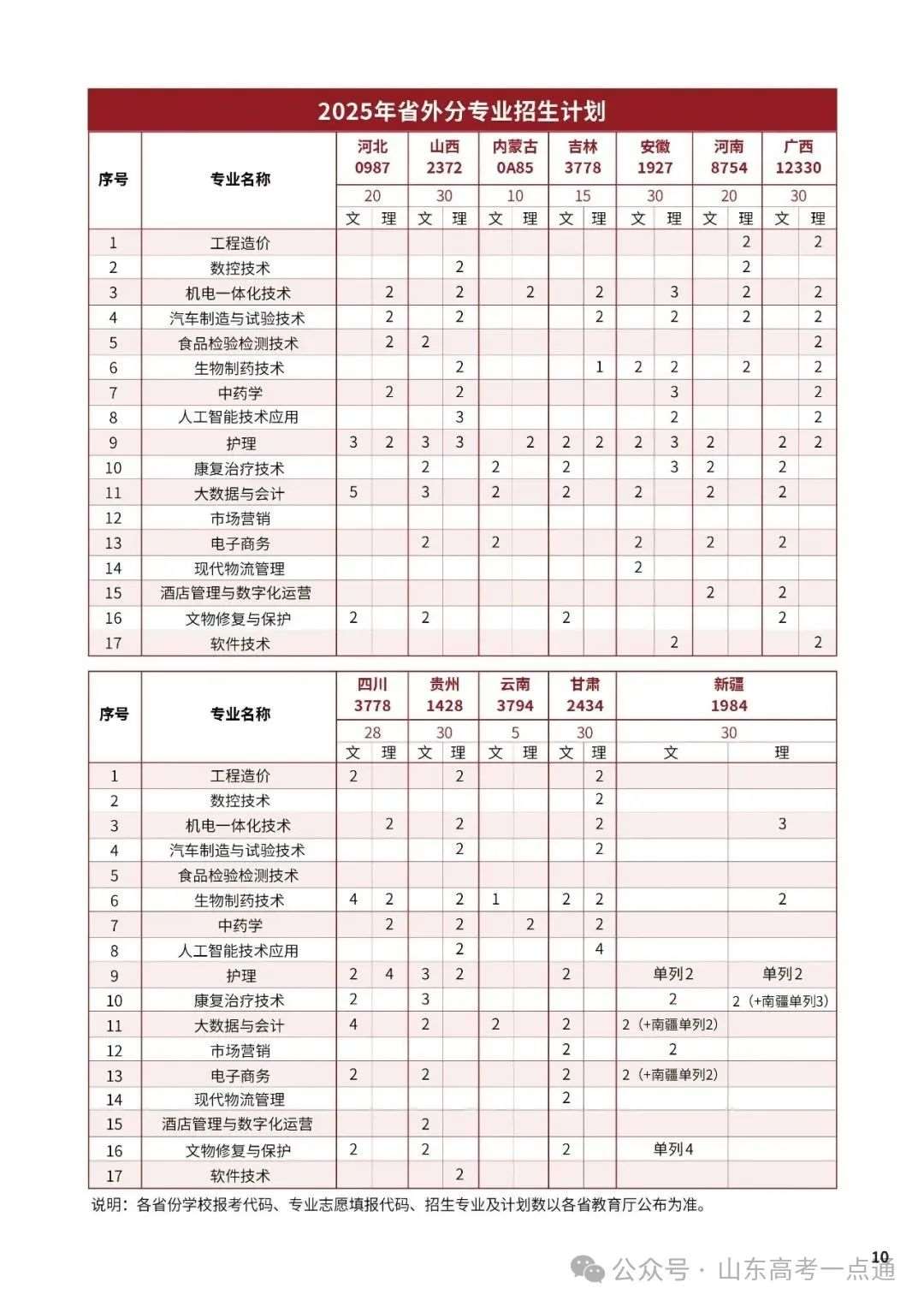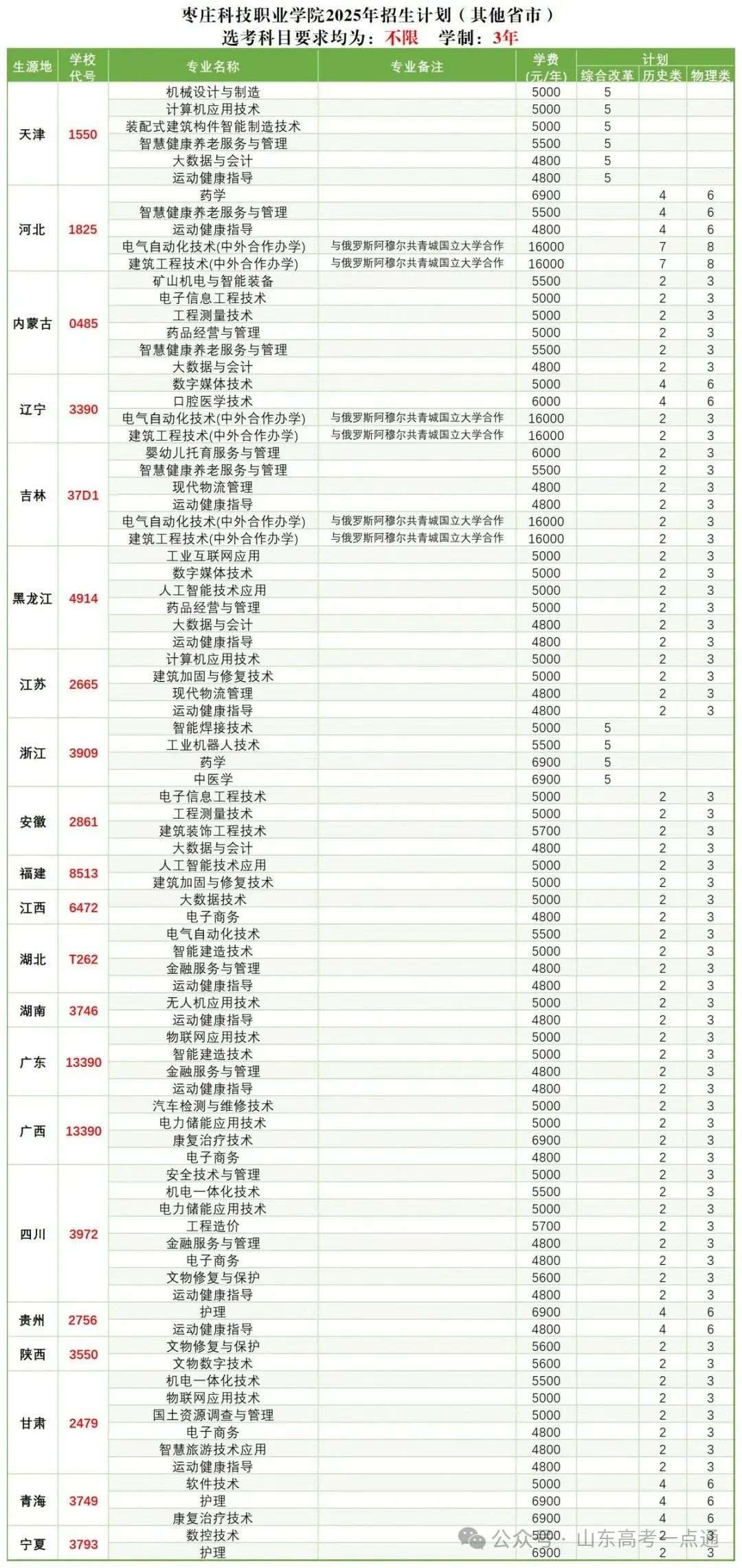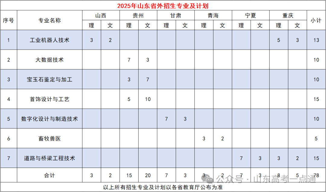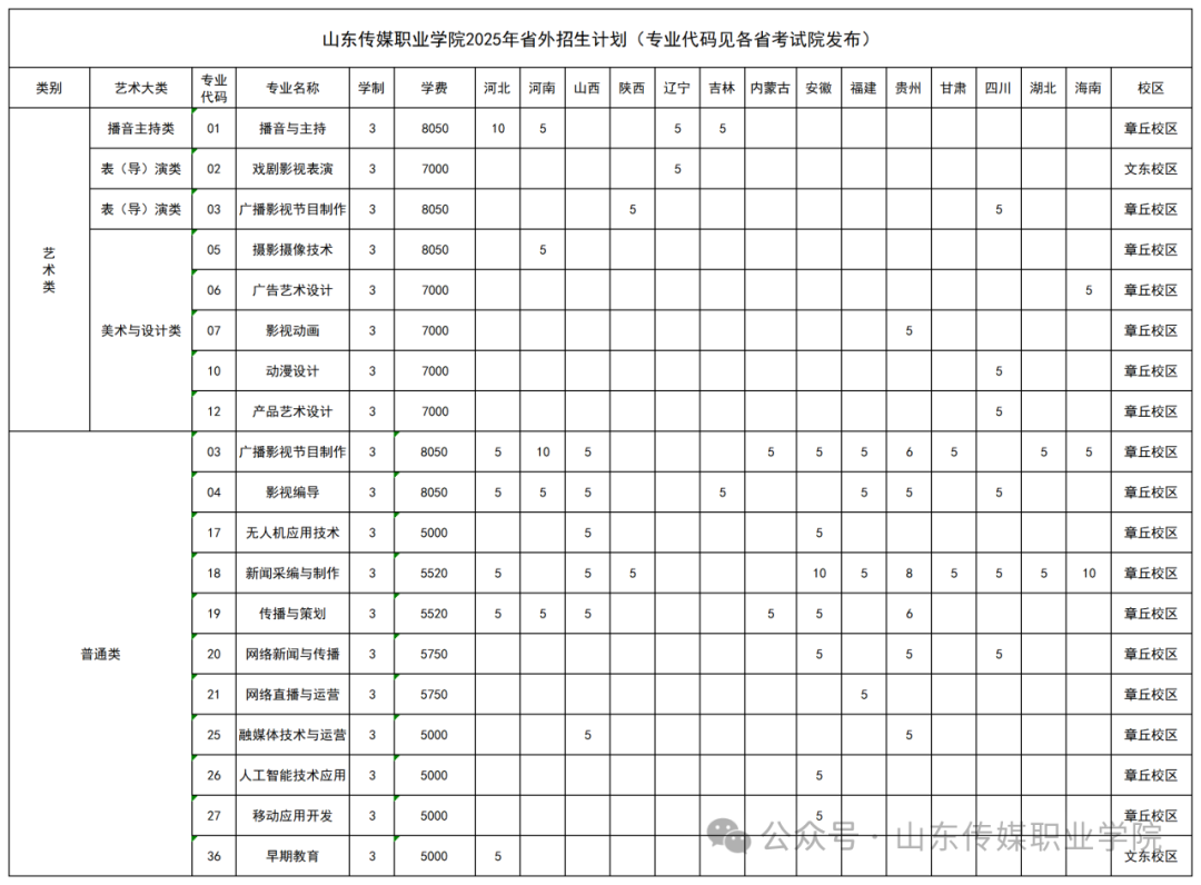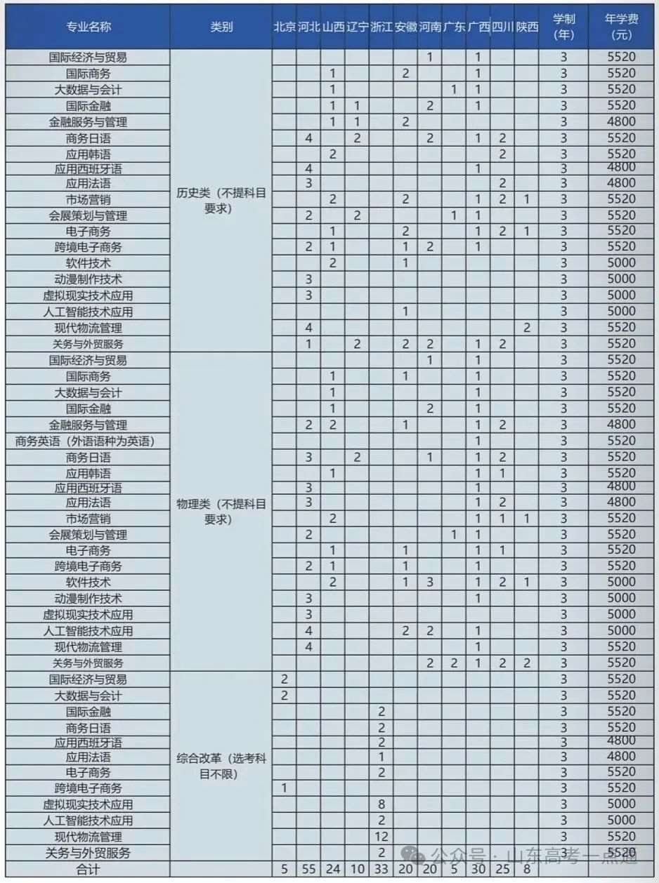 三、山东省外2025年招生计划