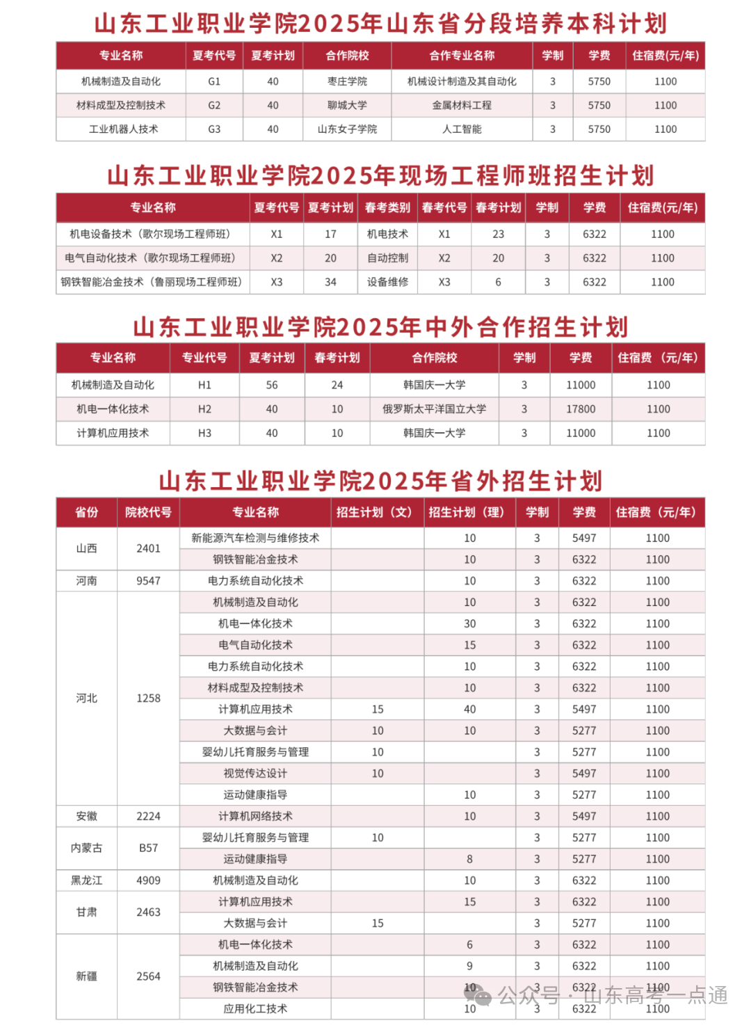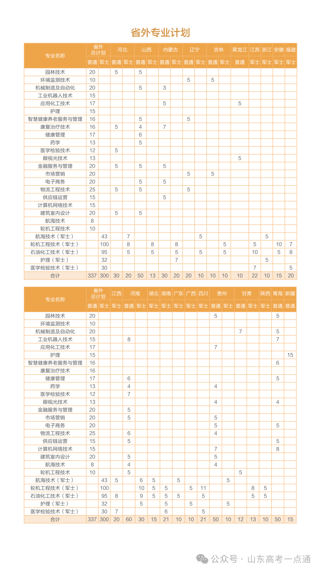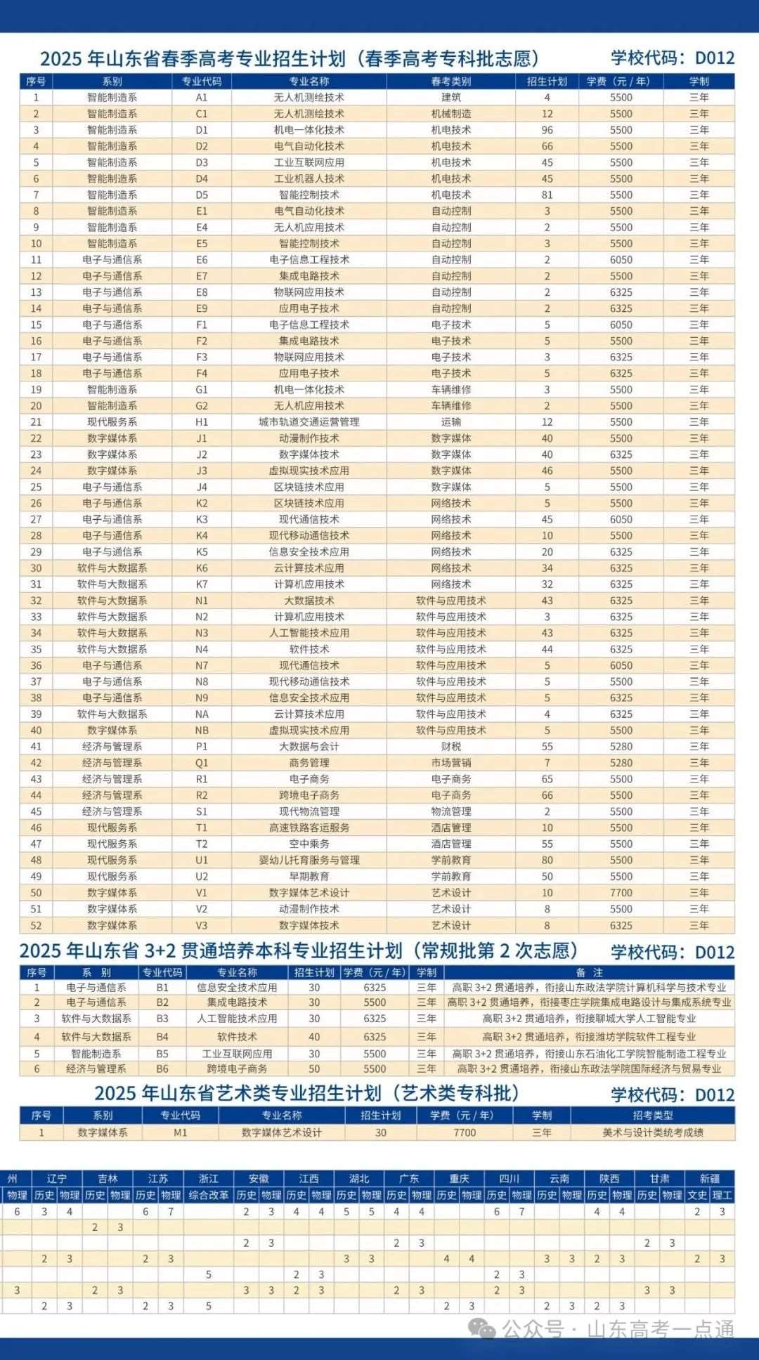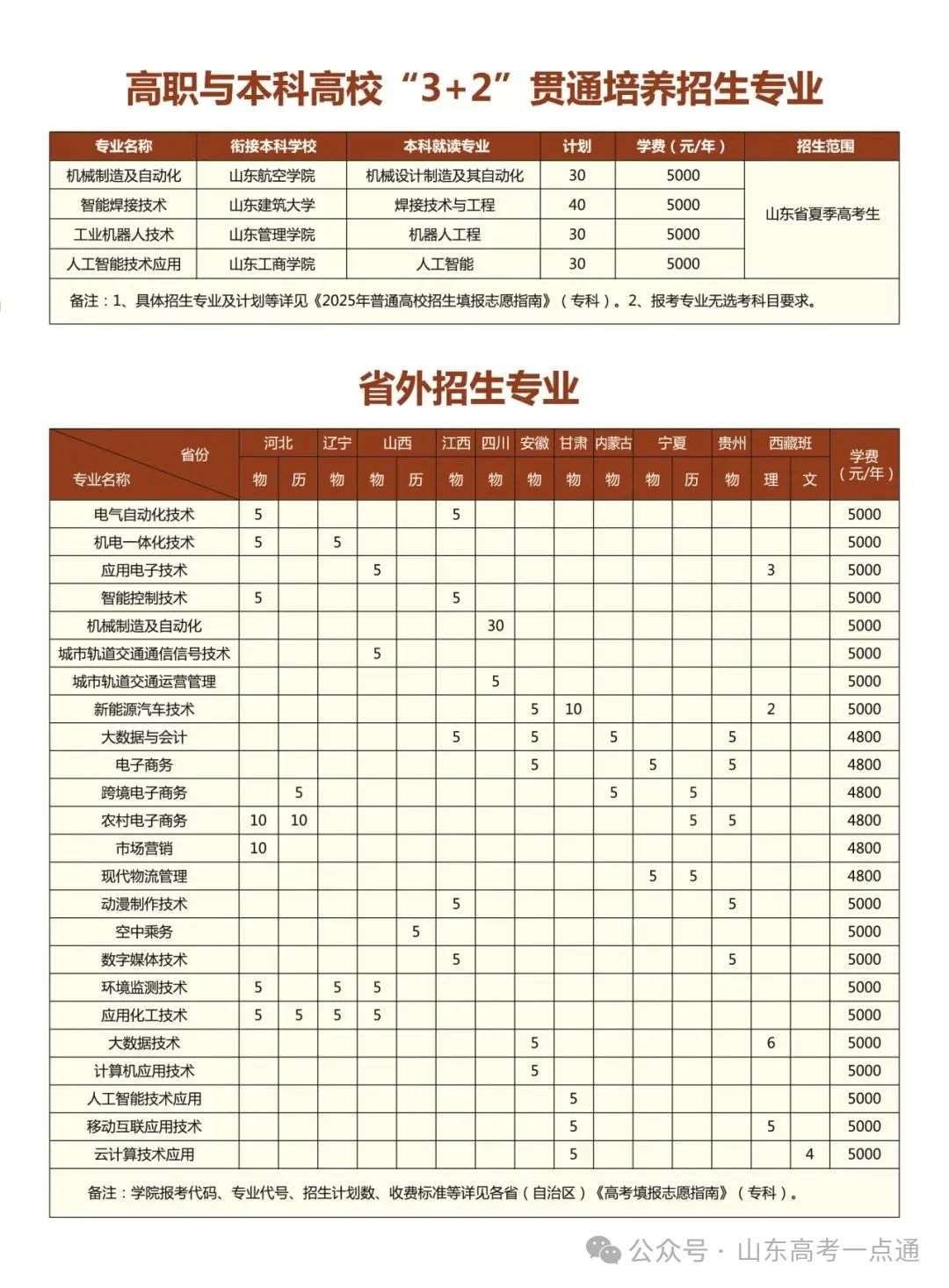三、山东省外2025年招生计划