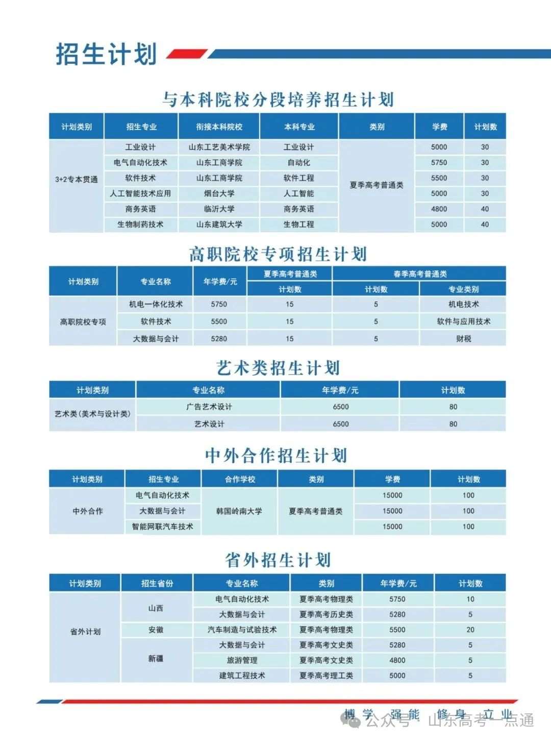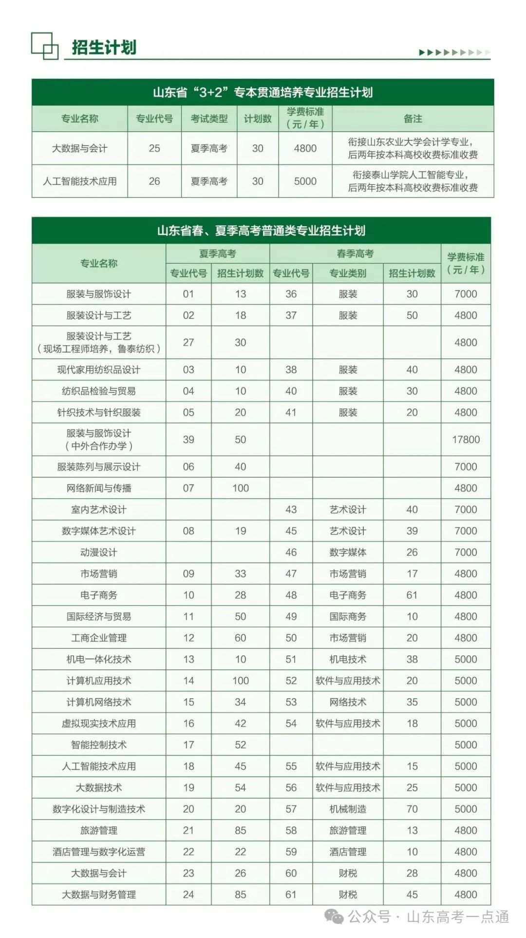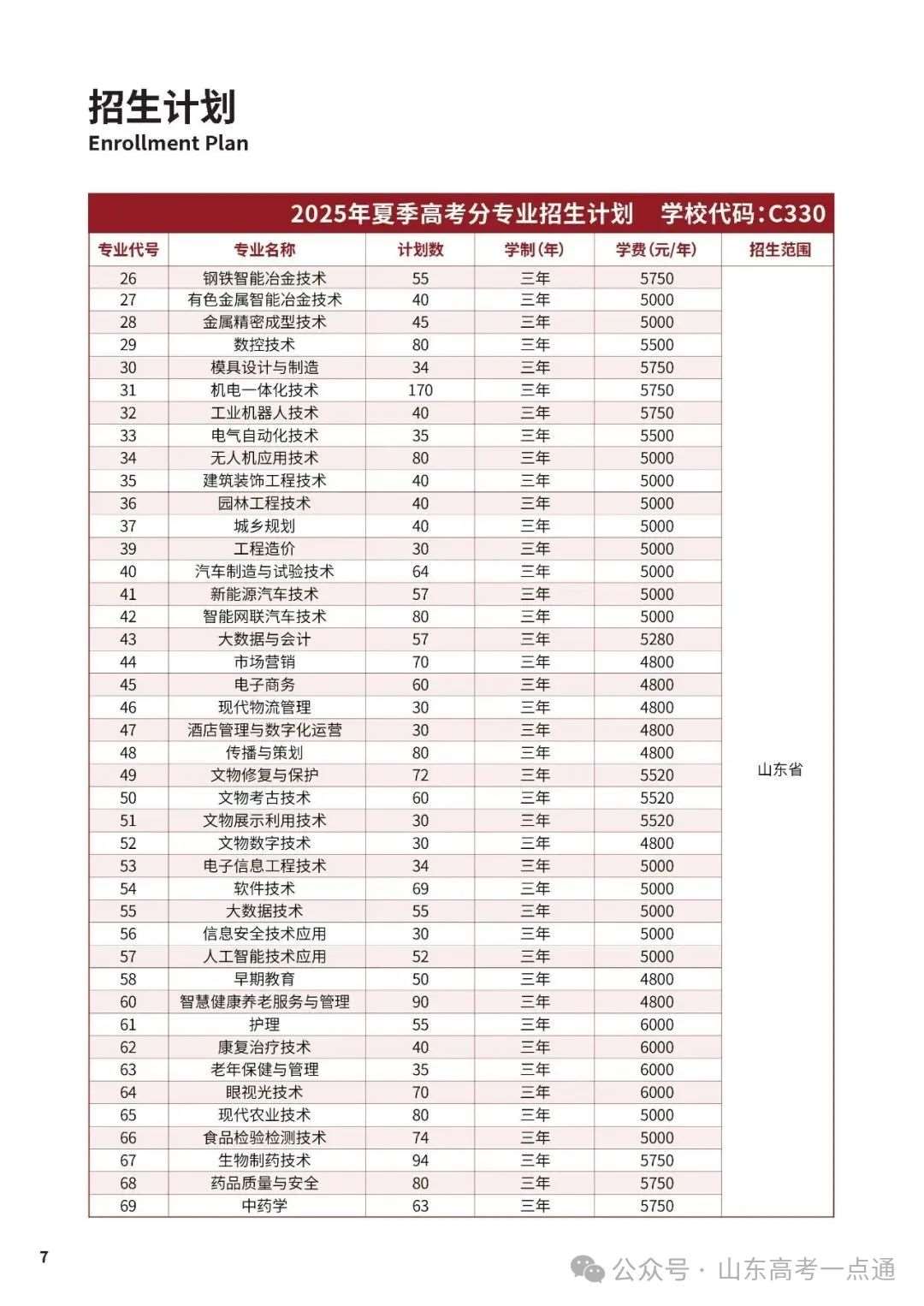 山东省招生专业及计划