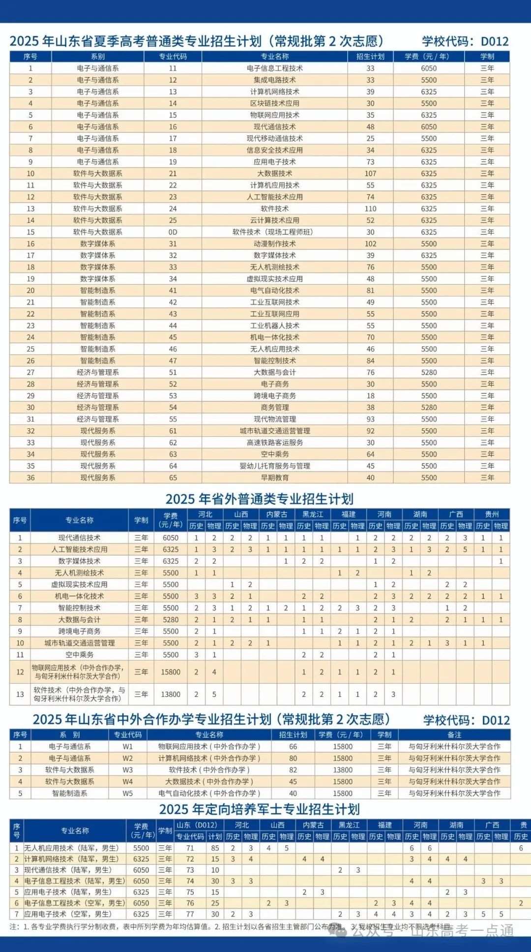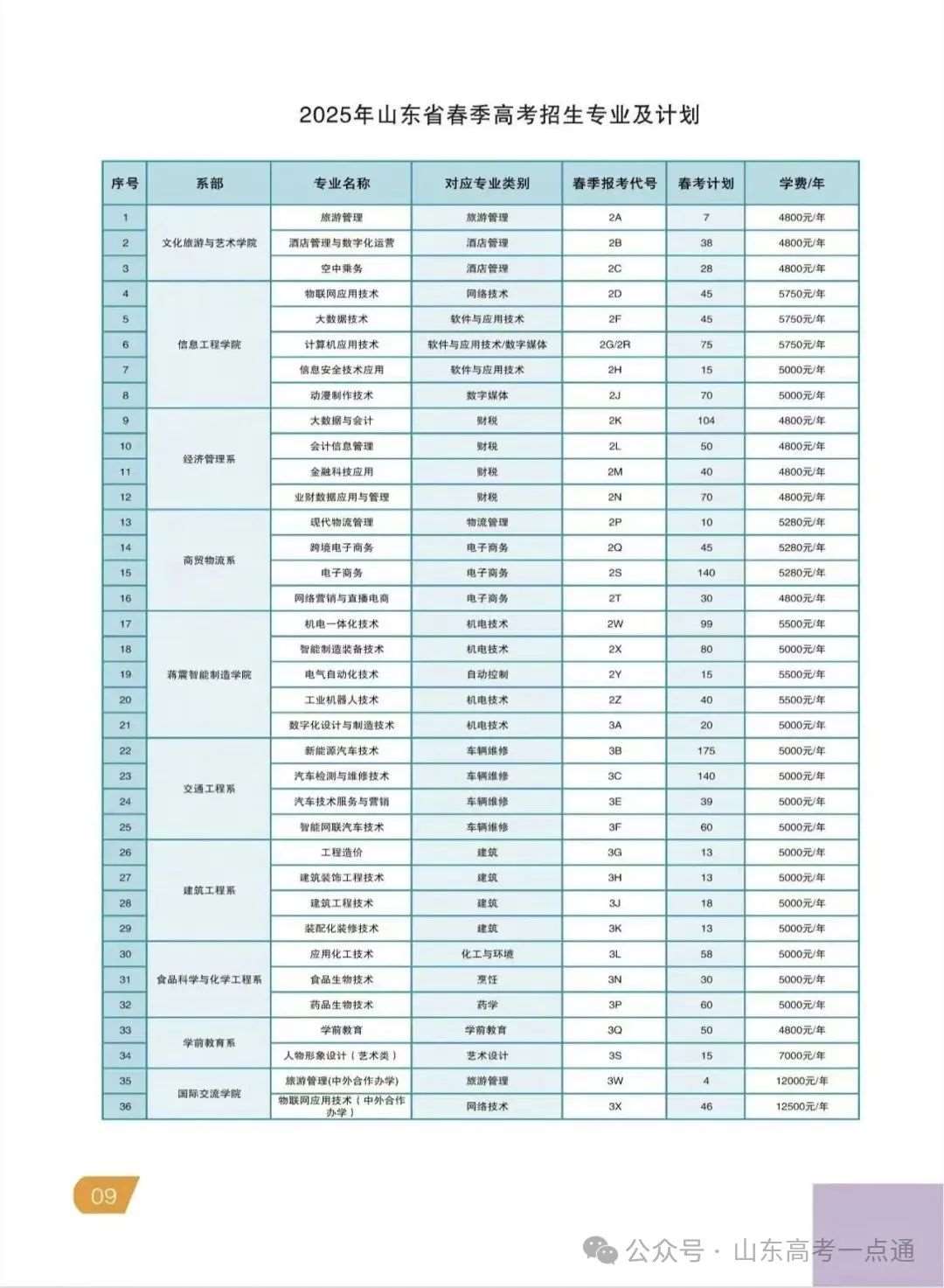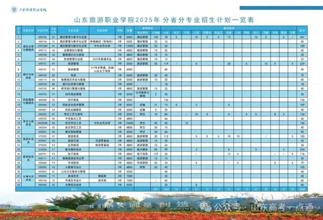 学校2025年山东省普通高考分专业招生计划一览表