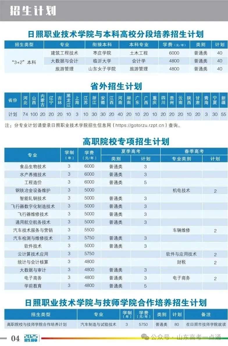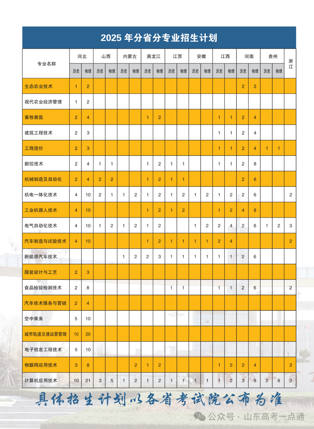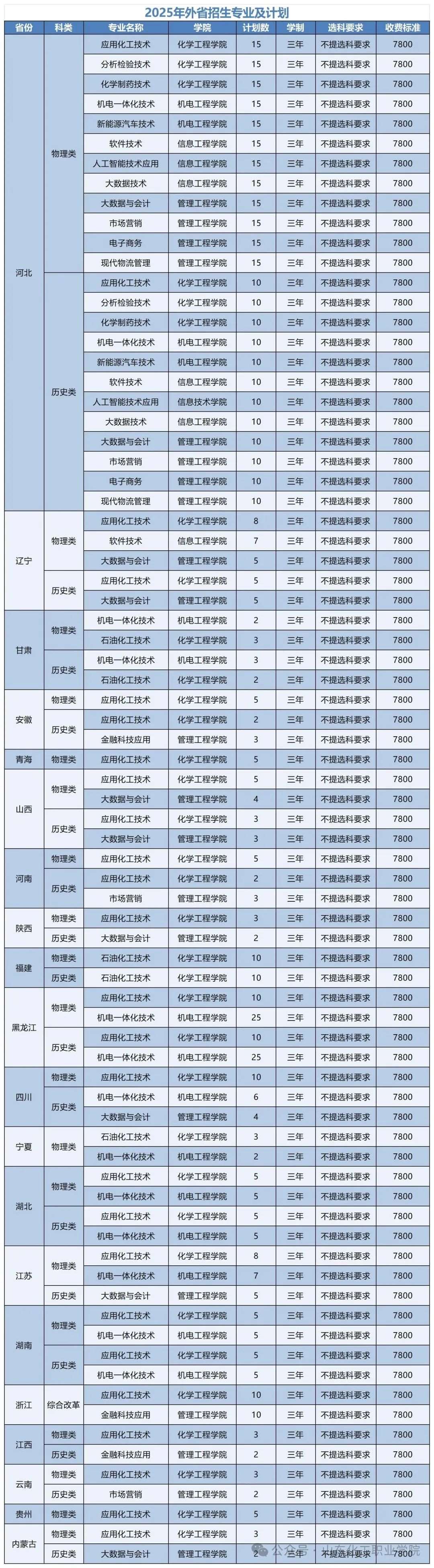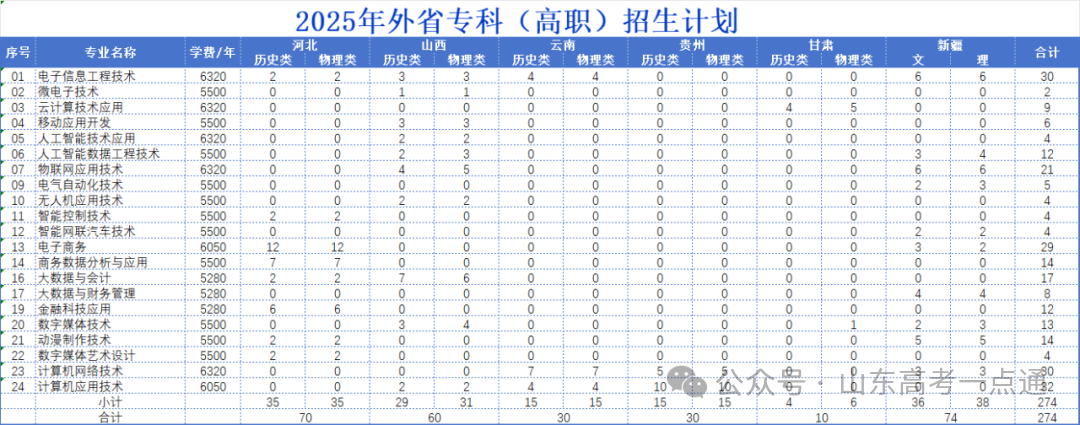 2025年专科(高职)招生来源计划表