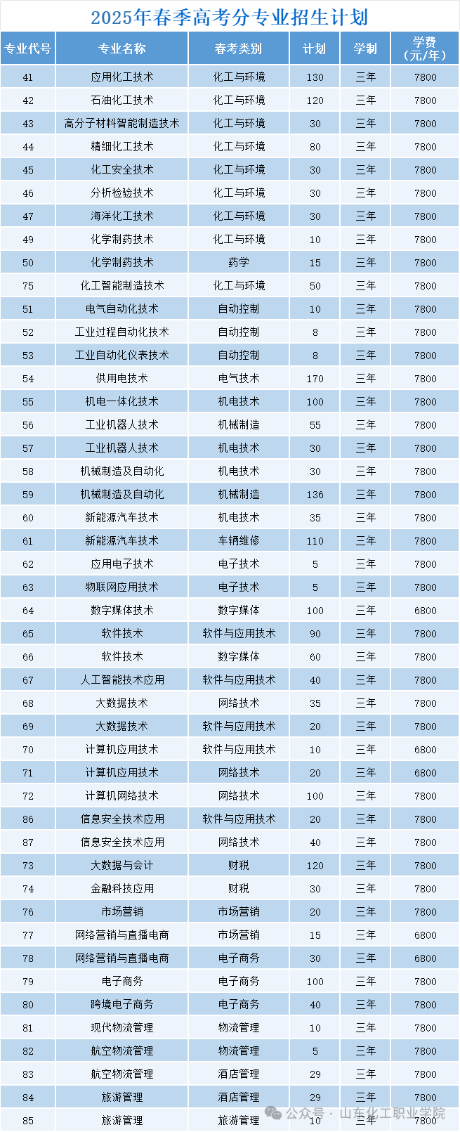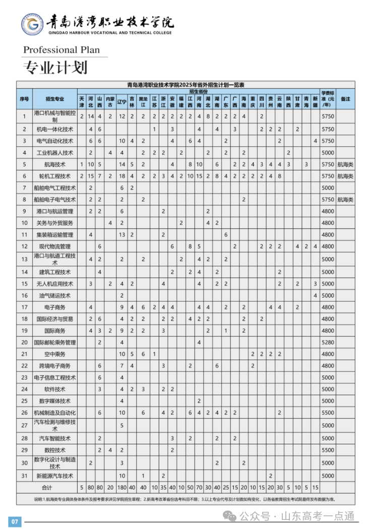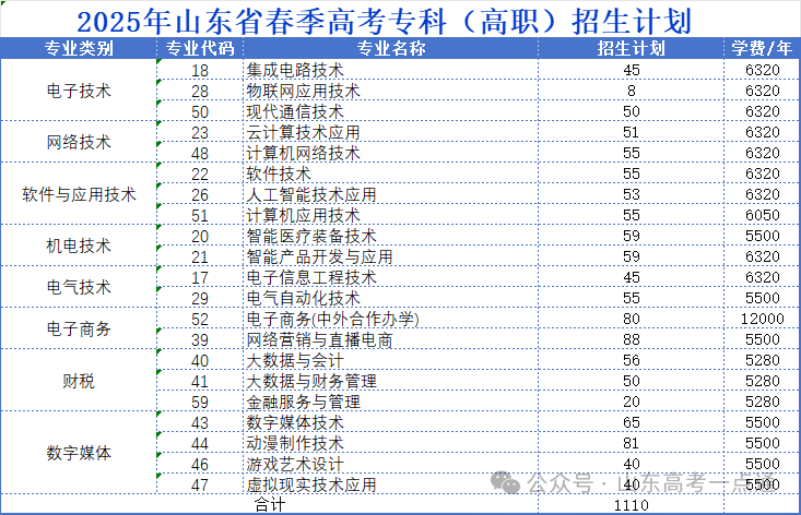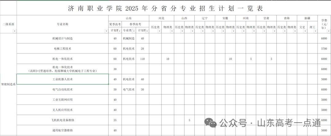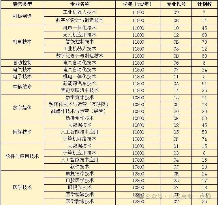 2025年山东省春季高考分专业招生计划
