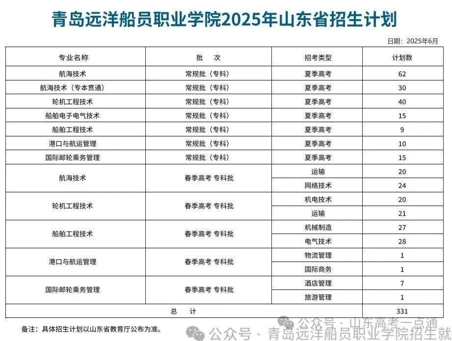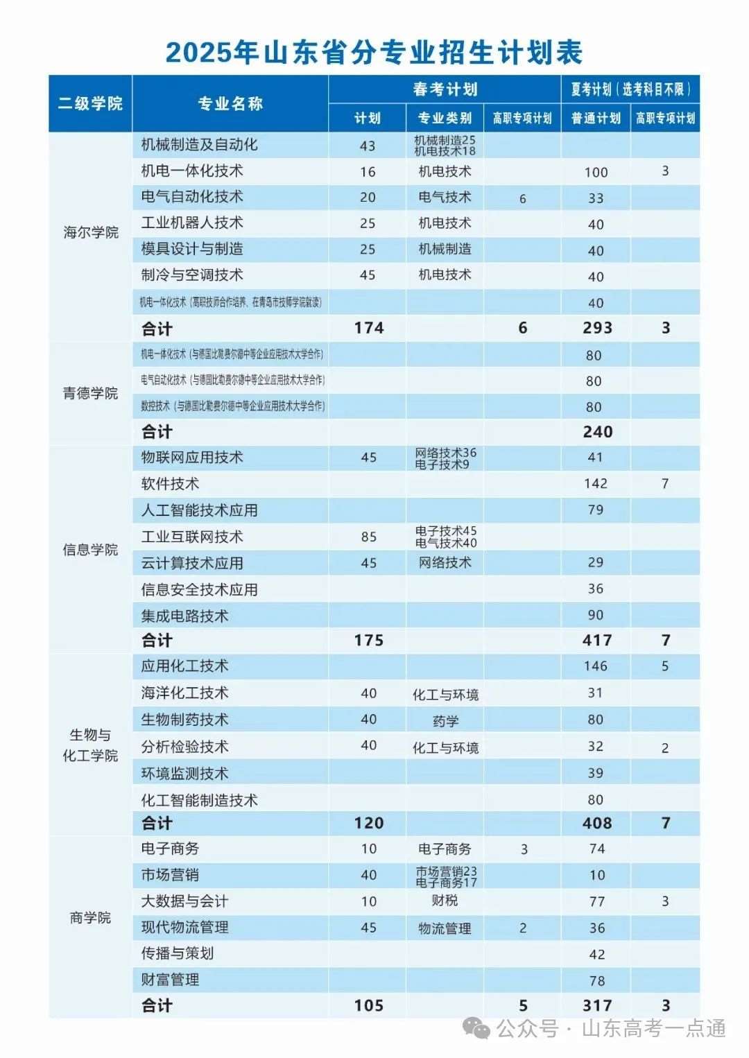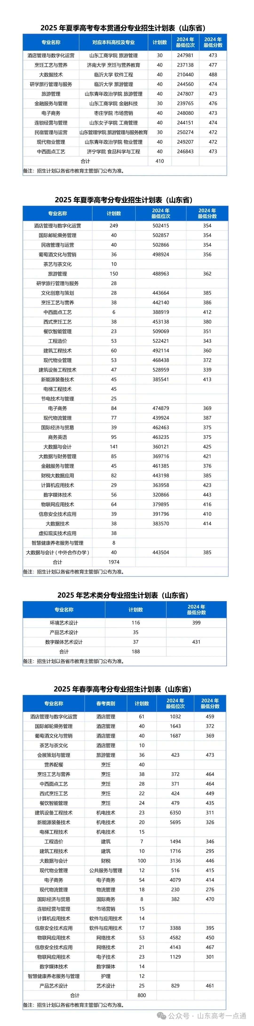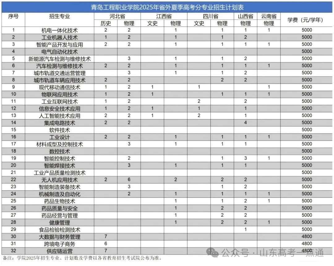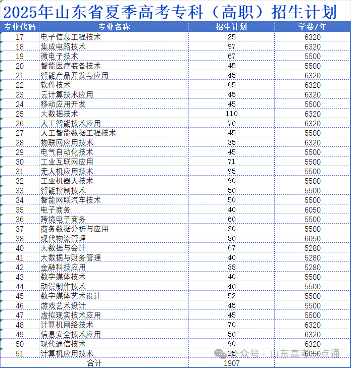 2025年山东省夏季高考分专业招生计划