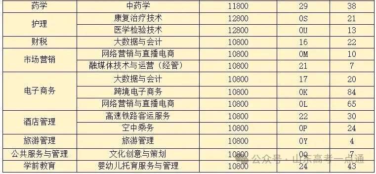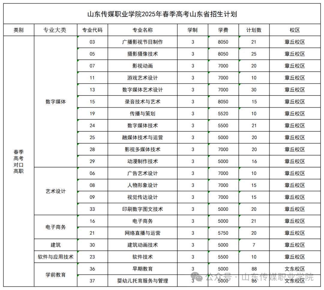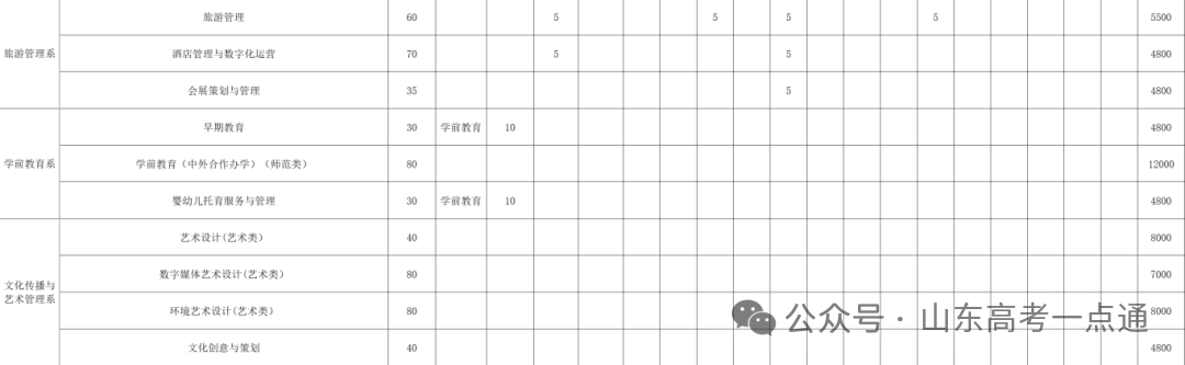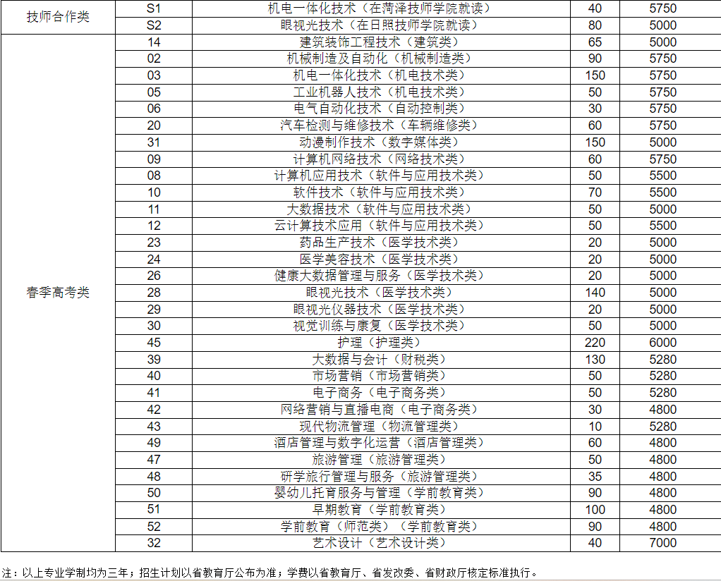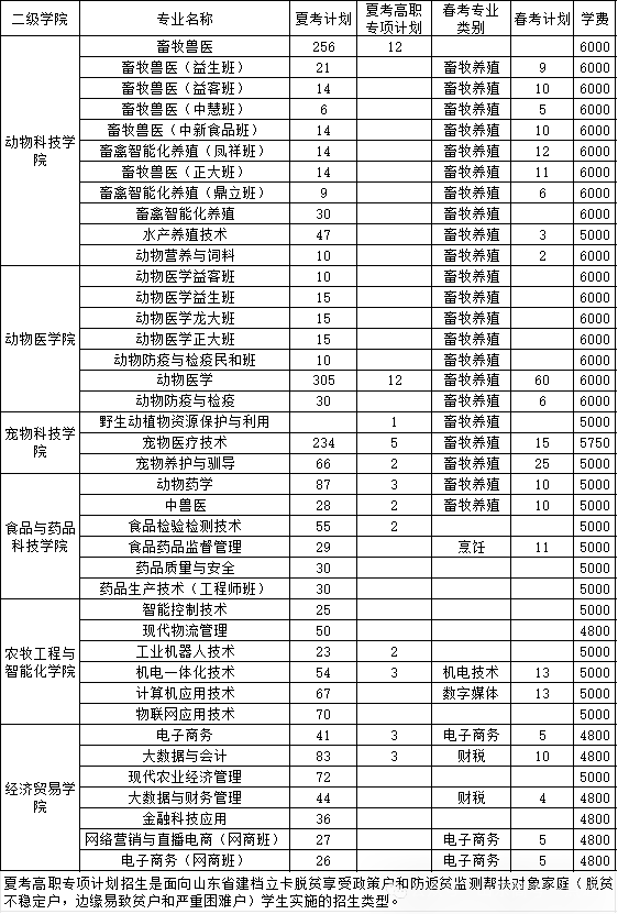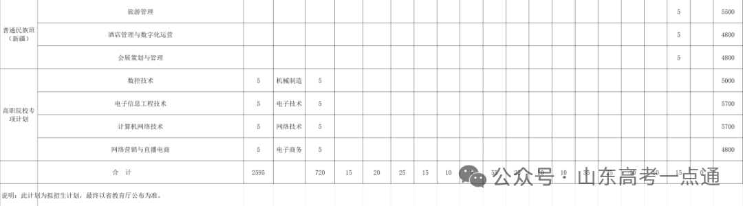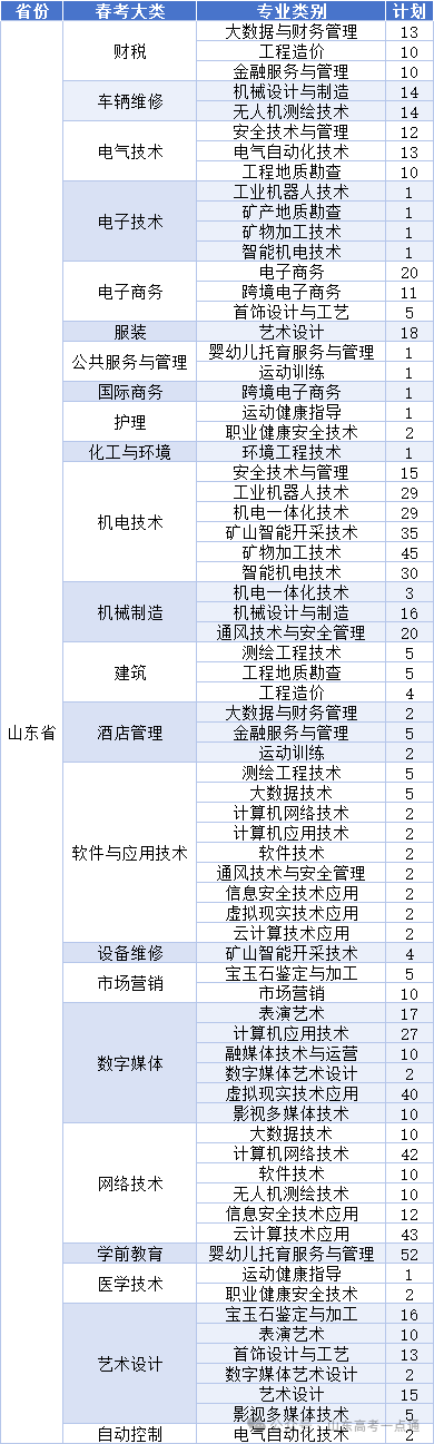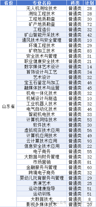 山东省春季高考招生计划