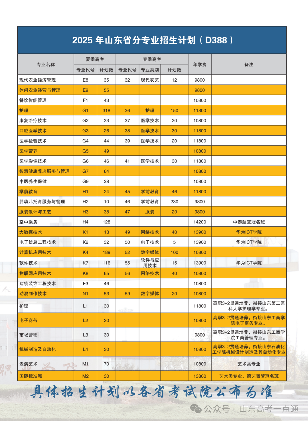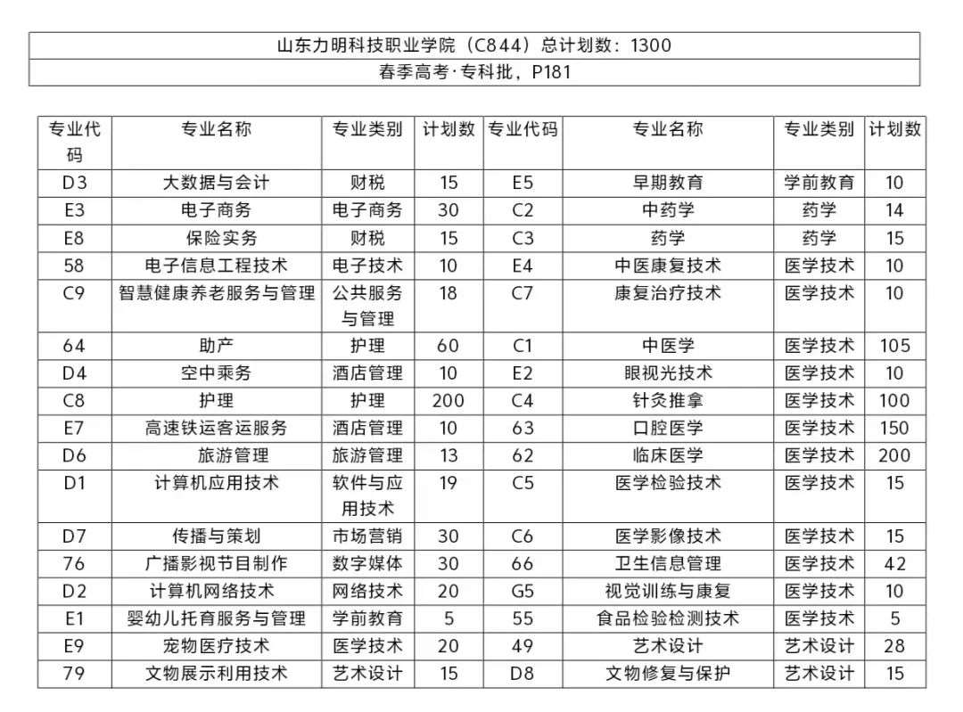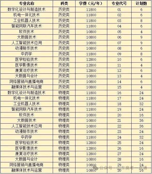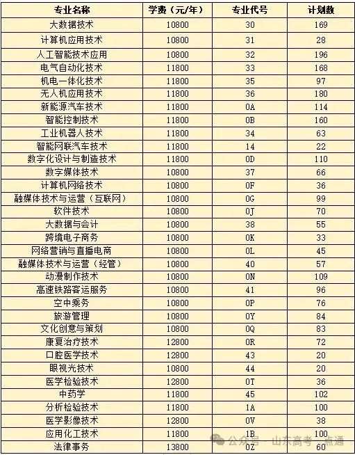 *最终专业计划及专业分类以山东省招考院官网公布为准