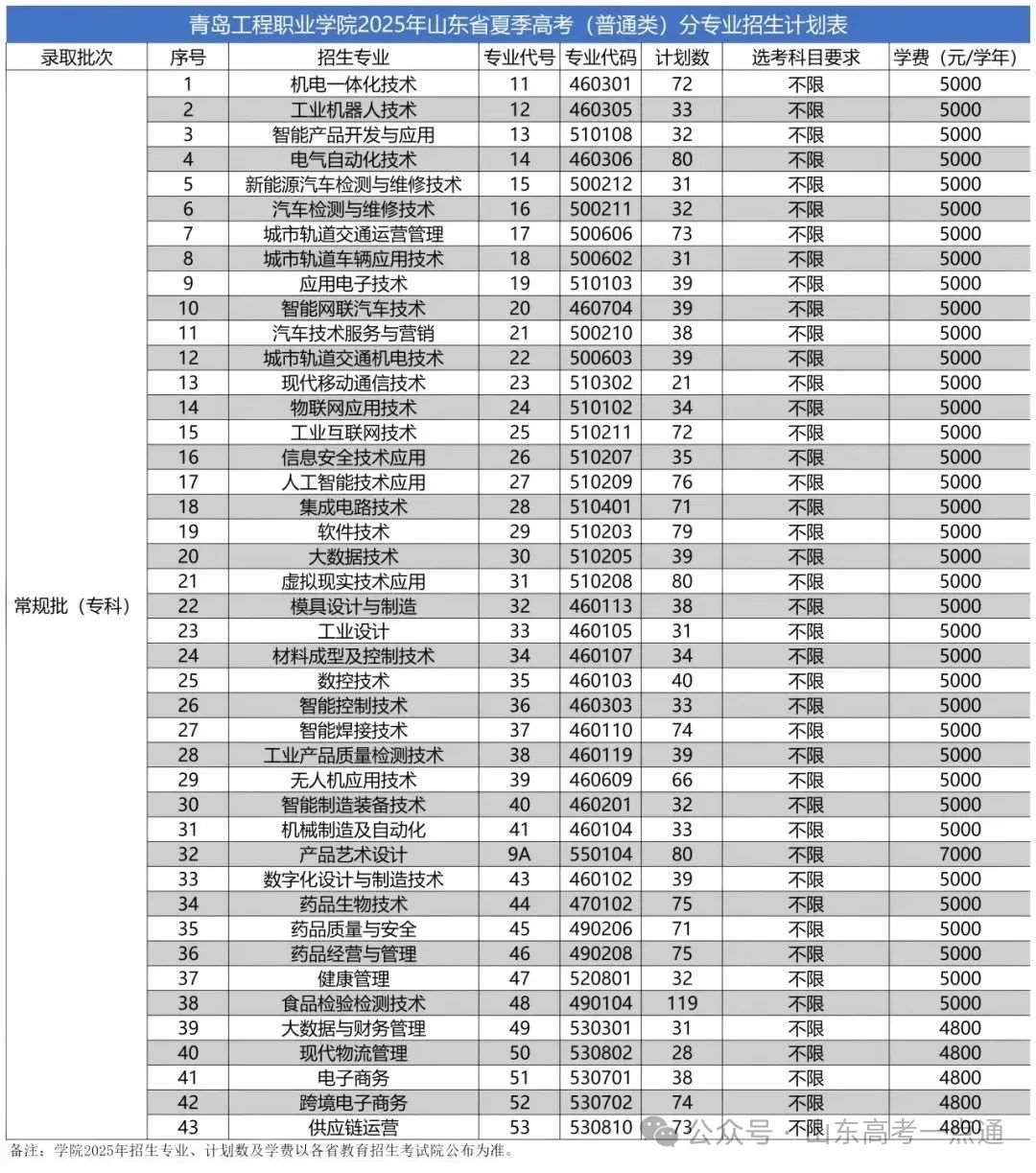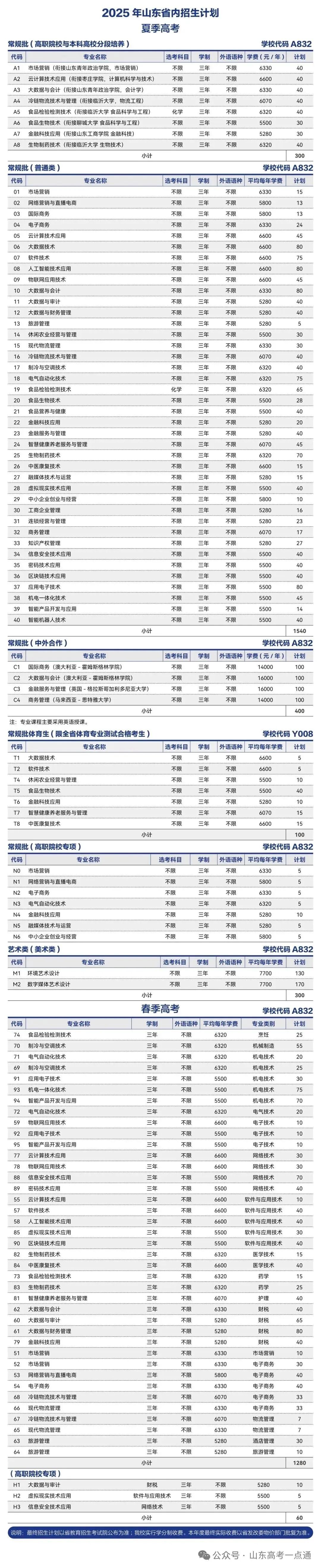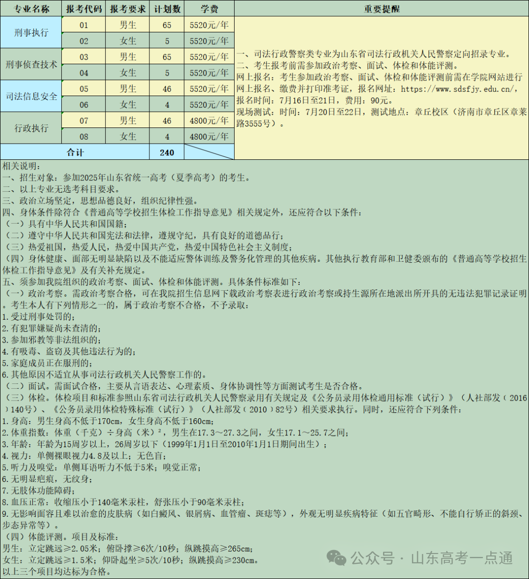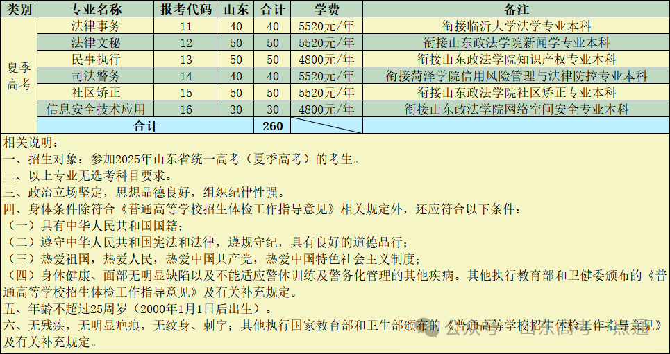 一、山东省2025年夏季高考(院校代号:E860)