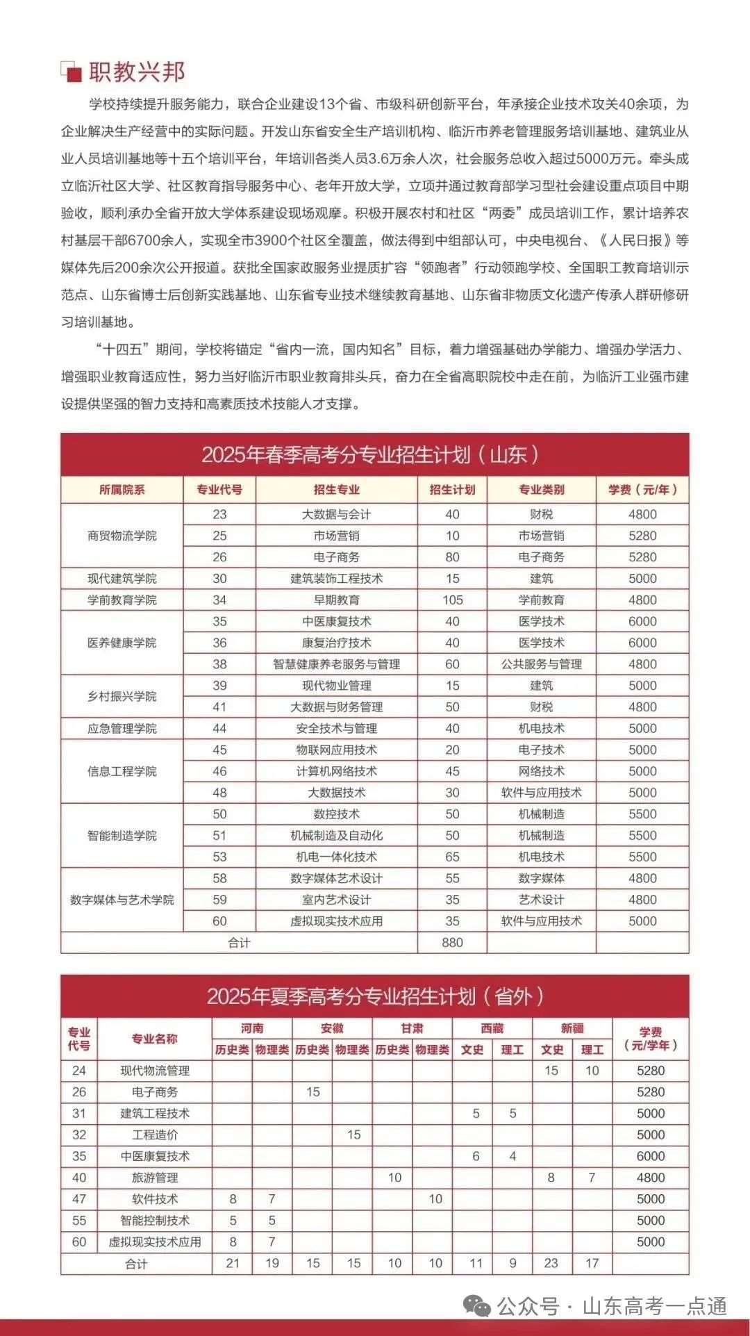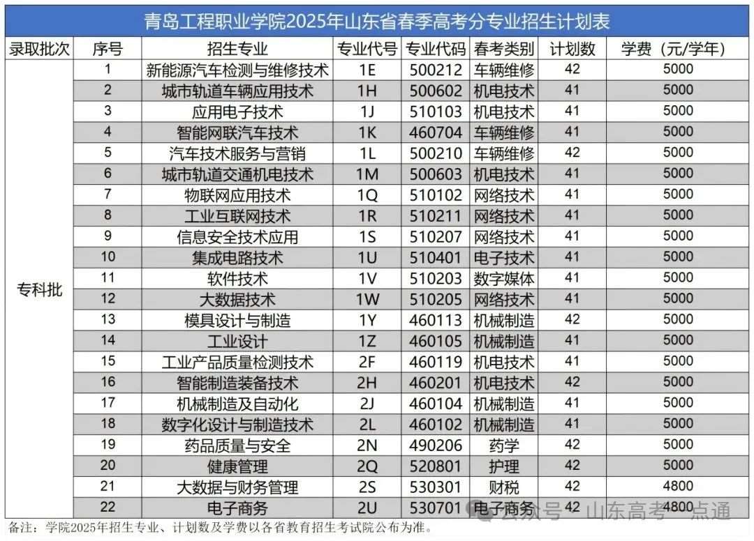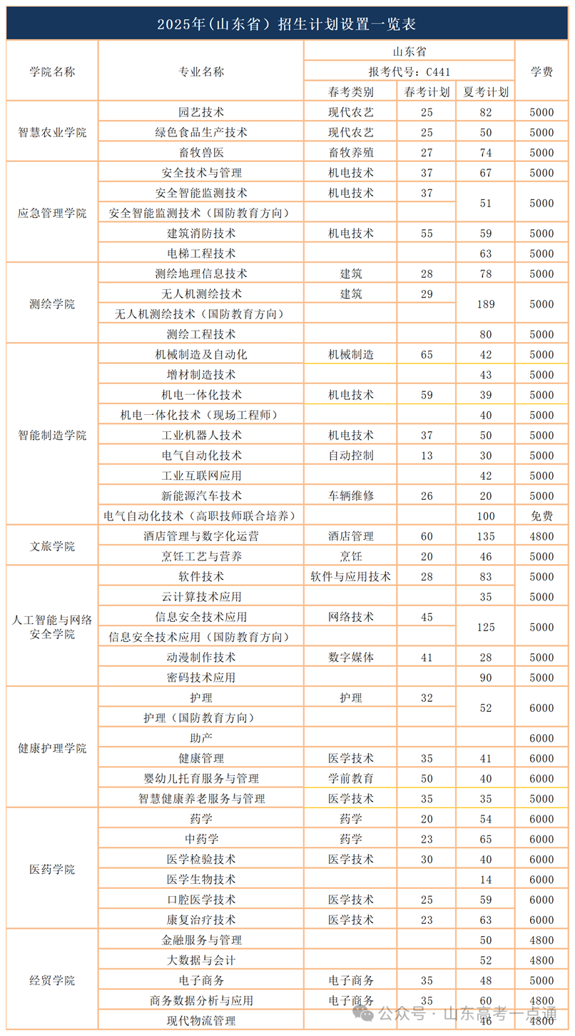 二、山东省2025年春季高考(院校代号:E860)