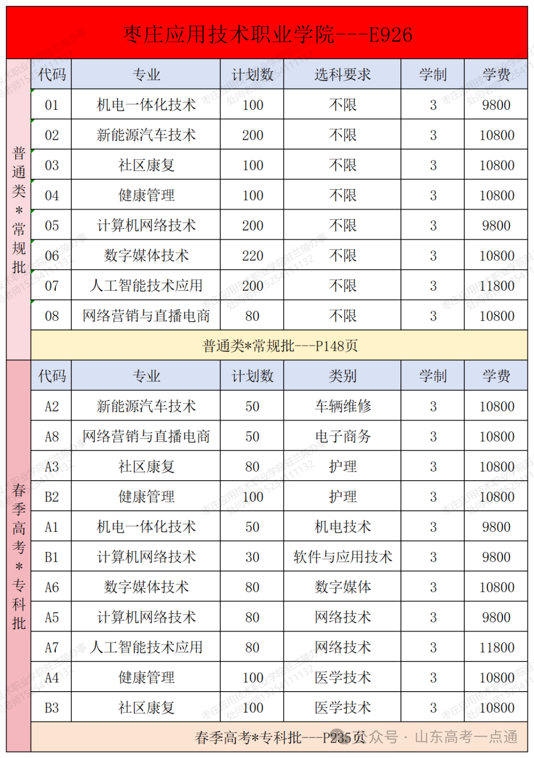 3.春季高考专科批计划