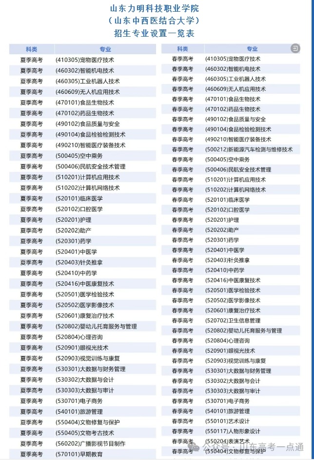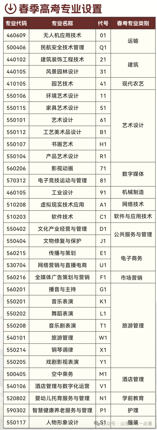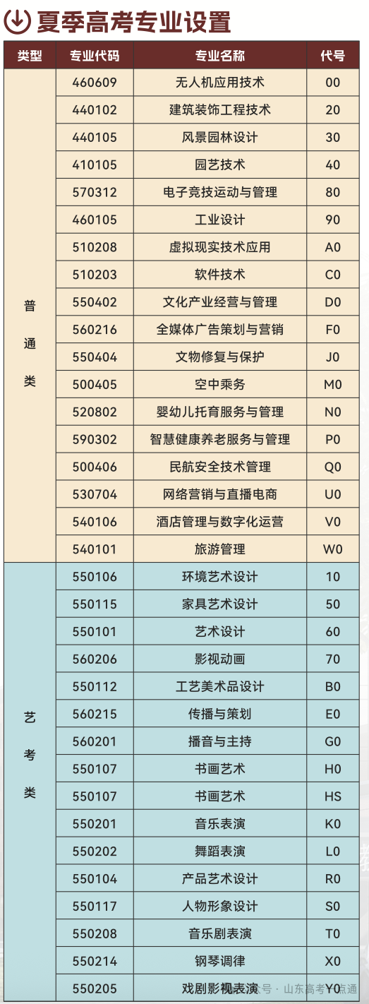 2025年春夏高考招生专业设置一览表