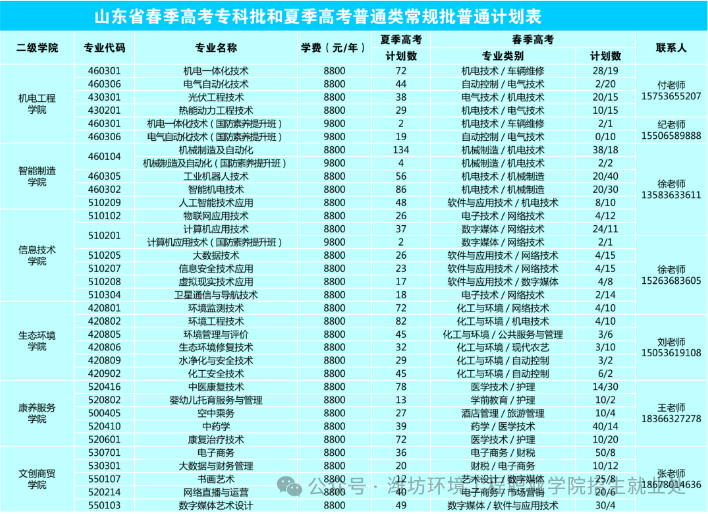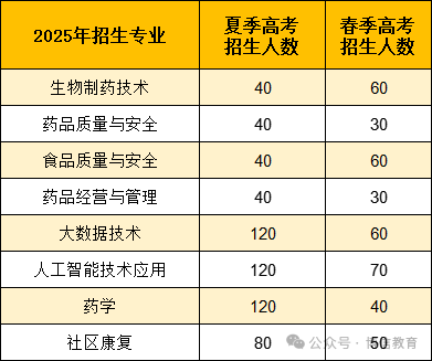 菏泽生物医药职业学院 2025年共计招生计划1000人,设置8个专业。其中春考招生计划400人,夏考招生计划600人!