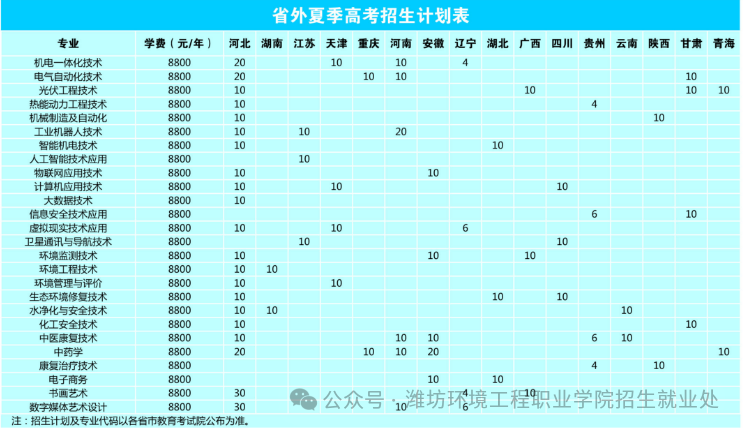 以上招生专业、招生计划及学费以各省(自治区)招生主管部门最终公布为准。