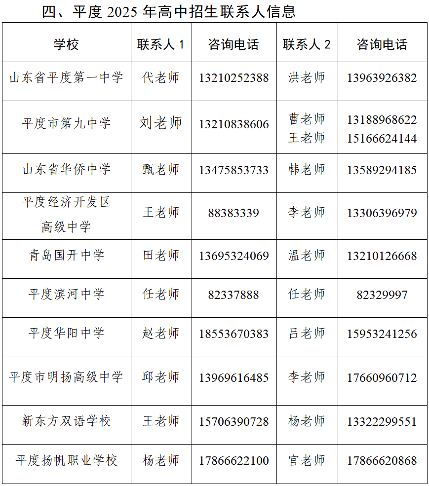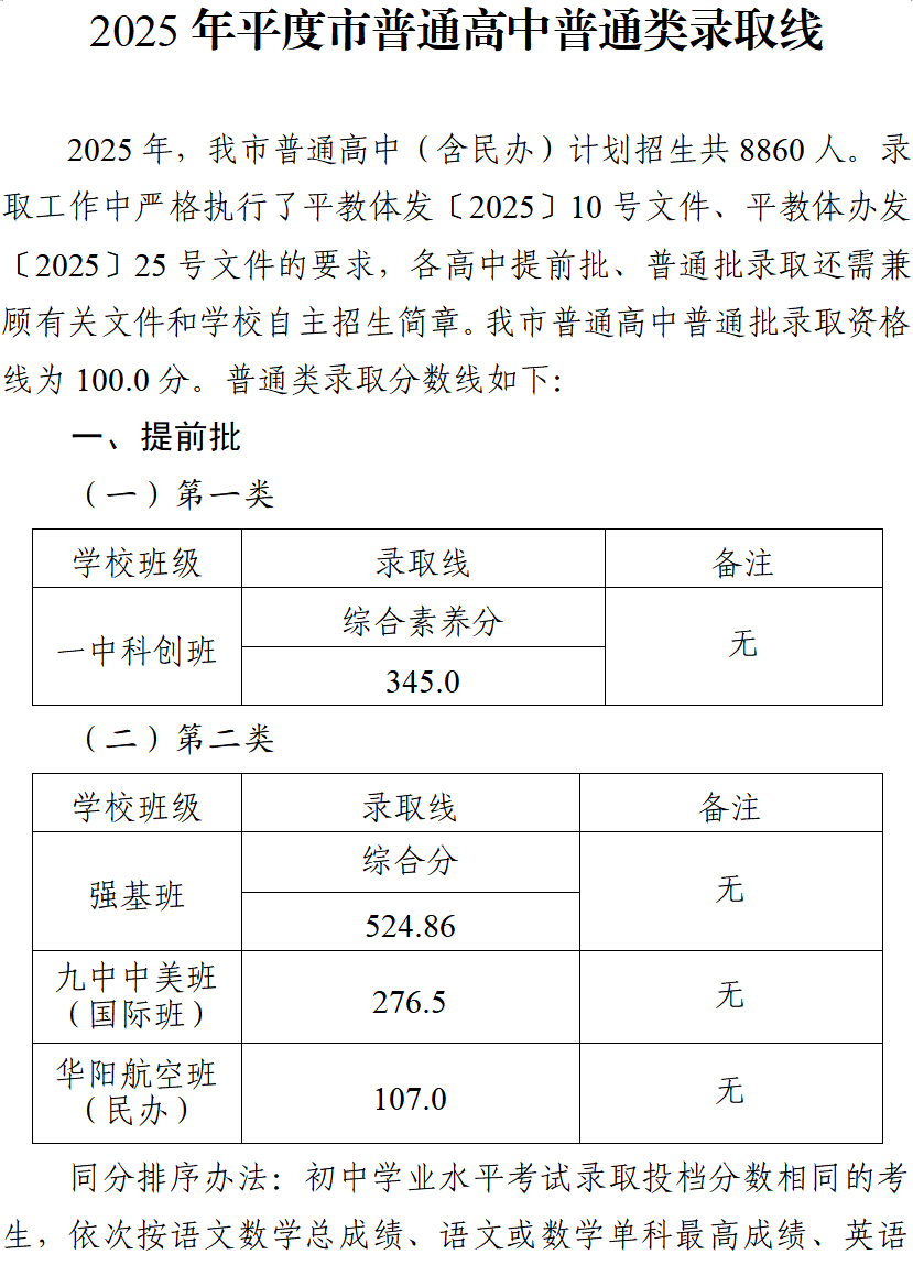 2025年平度市普通高中普通类录取线公布