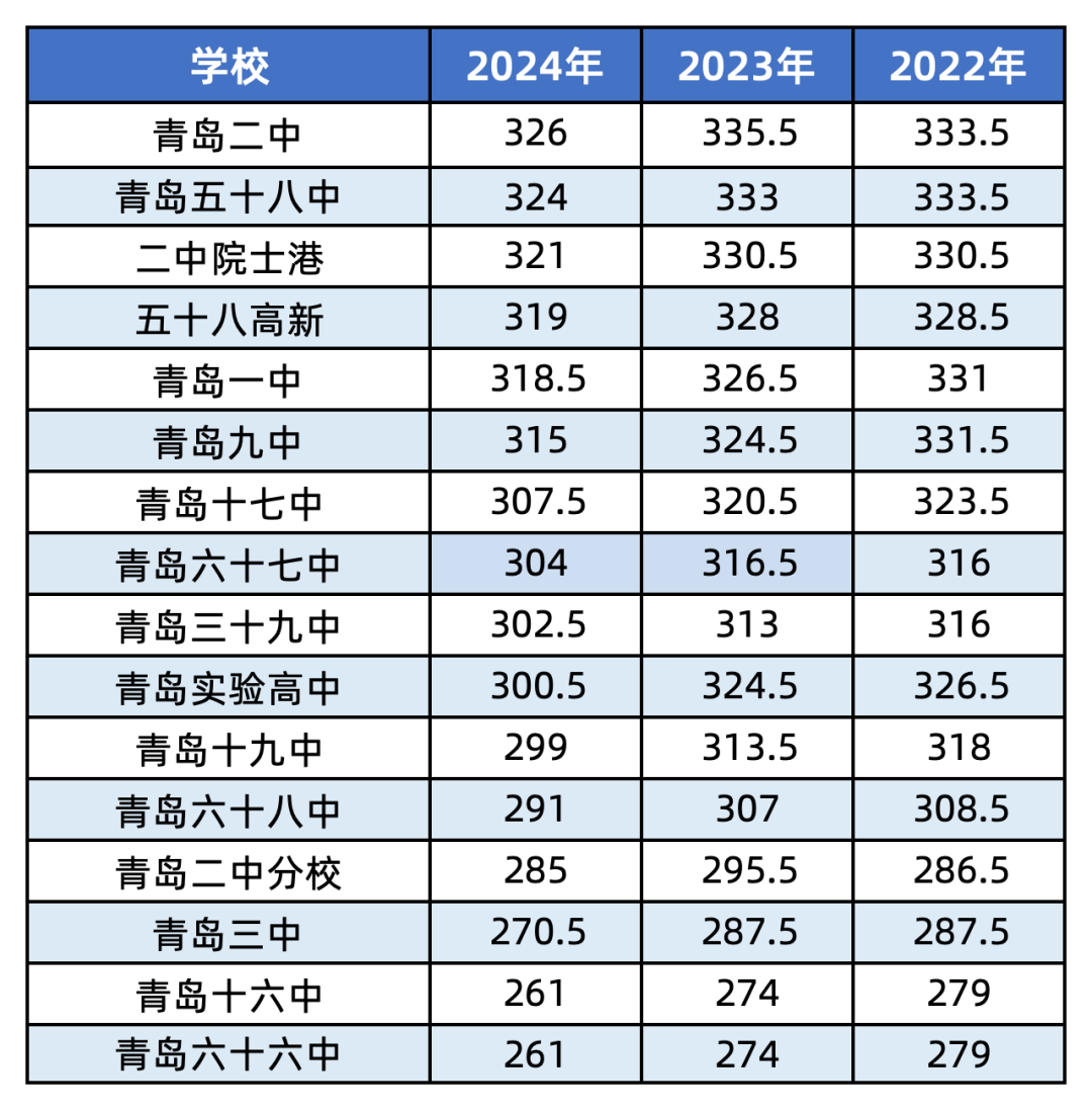 家长们*焦虑的还是中间的这几所,尤其青岛实验高中近年来分数线波动巨大,23年和九中持平,24年又低的让人大跌眼镜,今年志愿填报时,招生老师曾预测今年分数线会稍微上涨,但不会像23年那么高,另外两所外迁的高中——39中、19中,在家长们心中的地位也连年下滑,尤其19中,在24年录取线已接近二类末尾。