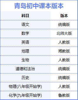 青岛初中阶段,八年级开始学物理,九年级开始学化学。2025级新初一新生关注语文、数学、英语、地理、生物、历史、道德与法治这7科的教材版本。