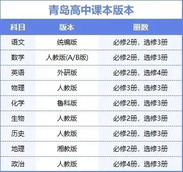 为A/B版,目前青岛学校均使用人教版A版,青岛二中曾经使用过一段时间B版,经确认现已调整为A版。语数英为高考必考科目,其他科目六选三。