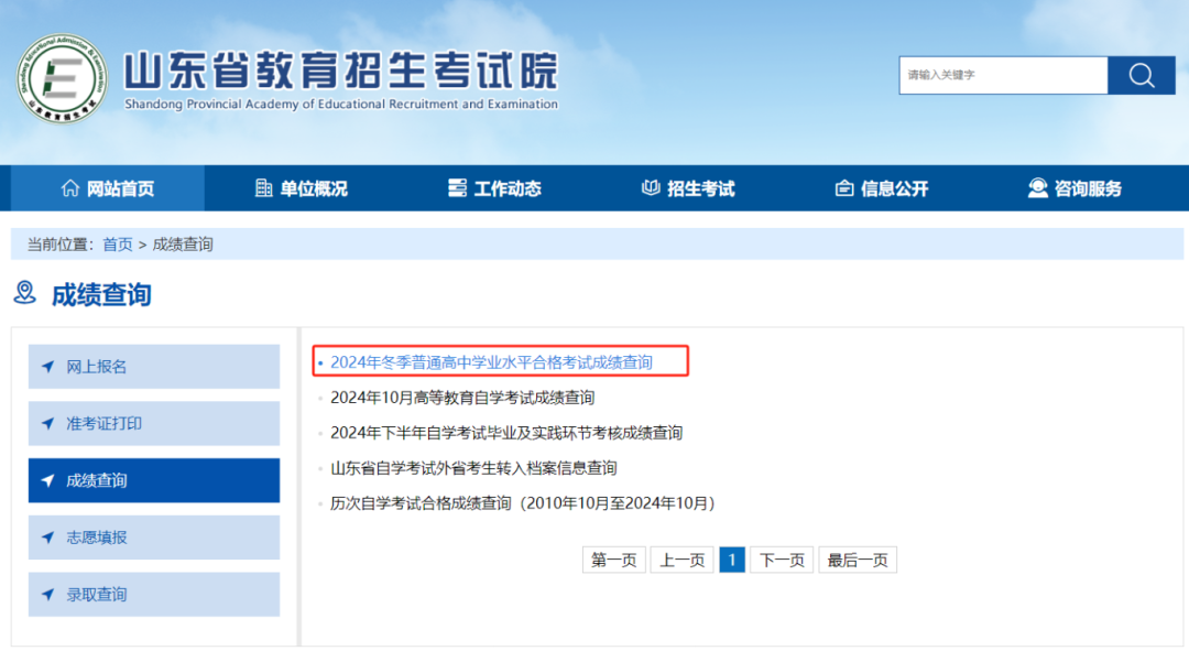 考生可登录山东省教育招生考试院*查询系统,在规定时间内查询当次考试*。查询步骤如下: