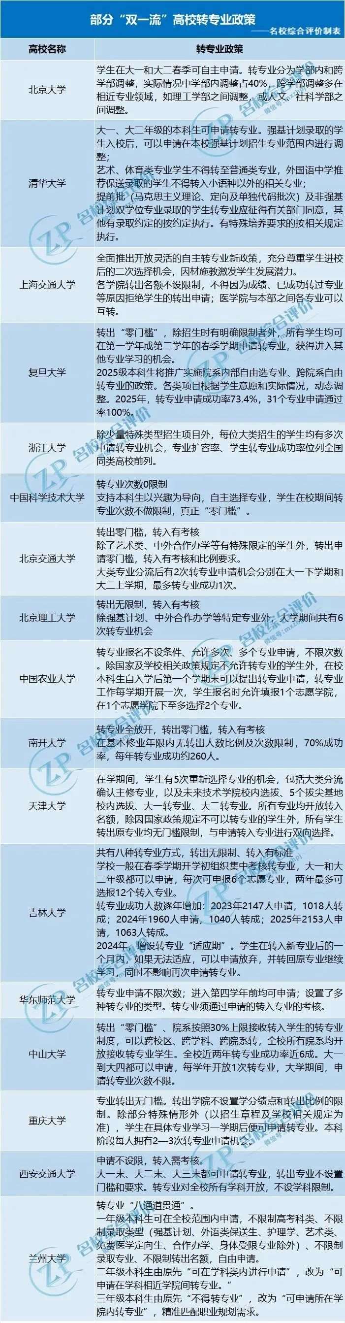 录取专业不满意?清北、上交、山大等近20校转专业政策大盘点!低年级提前关注
