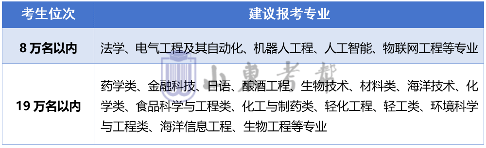 鼓励4000名以内选考物化科目的学生报考理工科专业,不限选科的专业推荐5000以内报考。