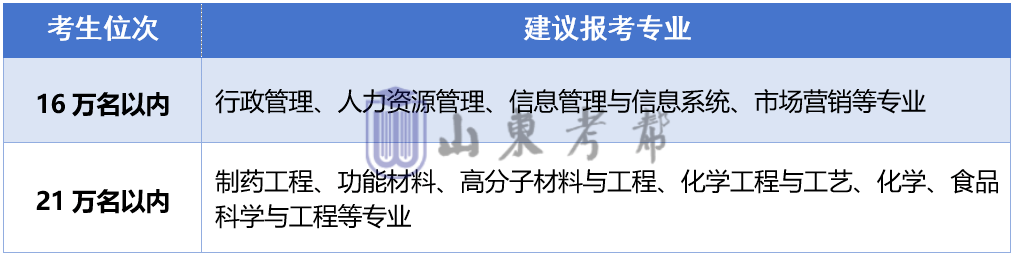 3、位次【16万名】以内考生,建议报考我校临沂校区机械电子工程、机械工程、交通运输、统计学、物流管理、工程审计专业;4、位次【20万名】以内考生,建议报考我校临沂校区其他专业。