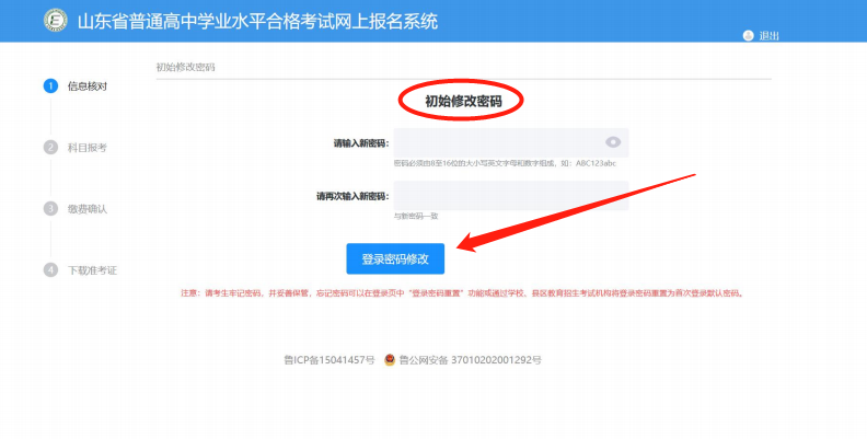 点击【登录密码修改】即完成,即可使用新密码登录报名系统。如下图所示: