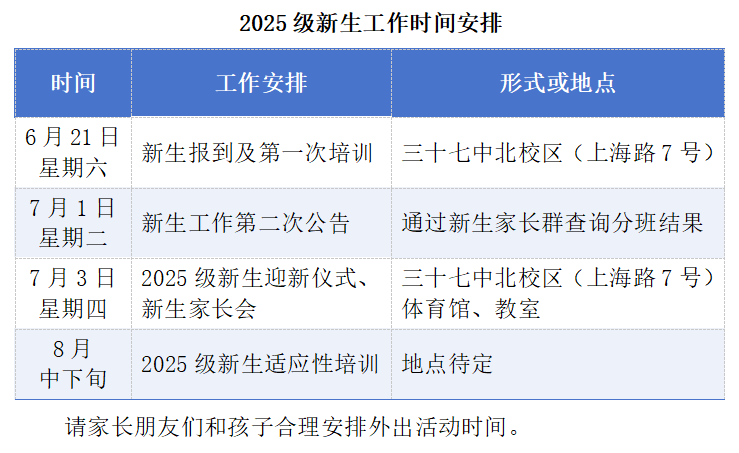 原文链接:关于组织2025级初一新生入学培训的通知