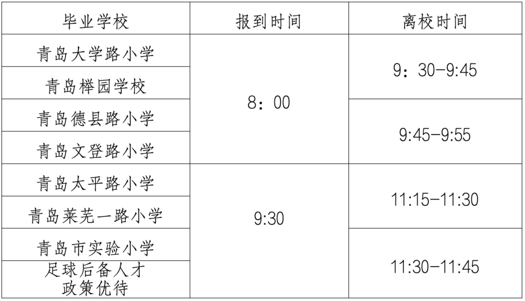 8:40:市南区实验小学毕业生、足球后备人才及其他学生。