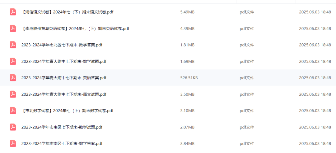 青岛往年7-8年级期末真题下载