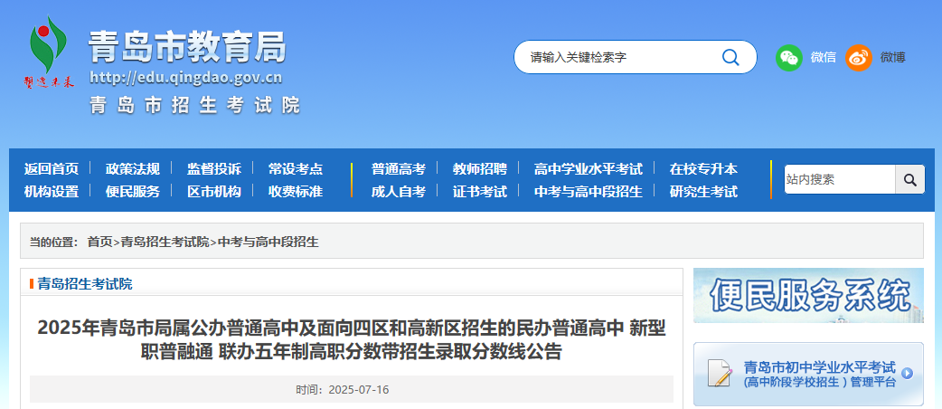 1.青岛市内四区+高新区中考生,满足民办*低控制线以上(普通班229分及以上、艺体班215分及以上),未被任何学校录取,可于7月17日至7月19日下午17:00之前缺额补录,填报青岛为明学校普通班代码904,艺体班代码905。7月19日17:00普高录取结束。