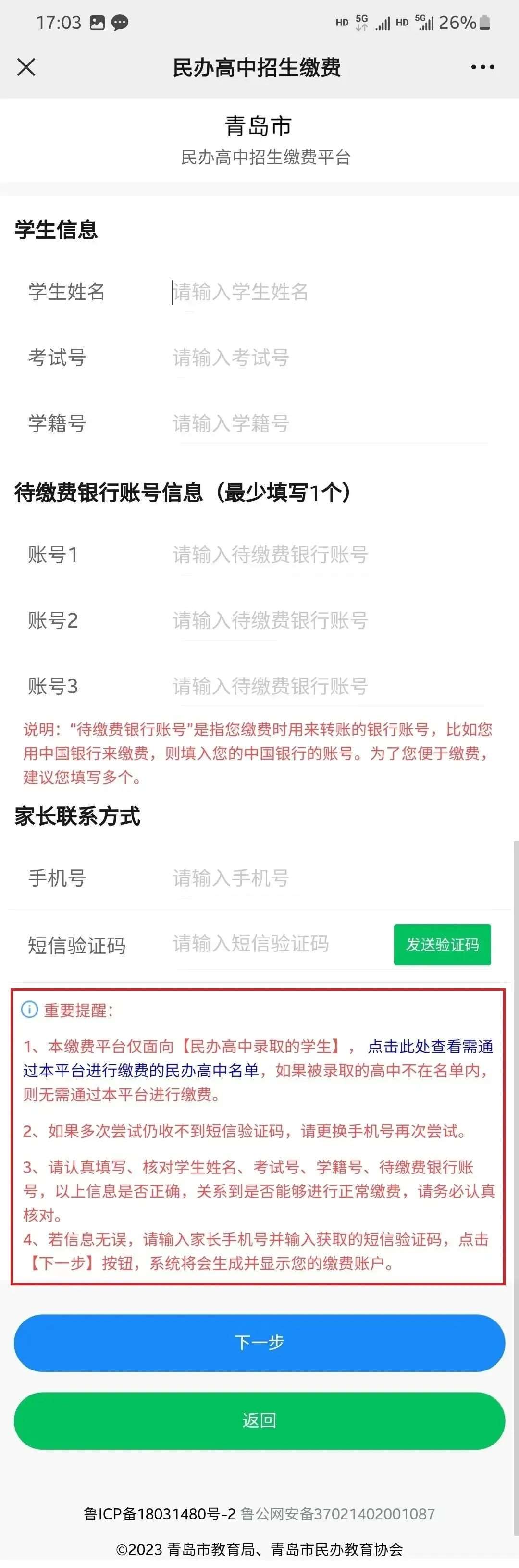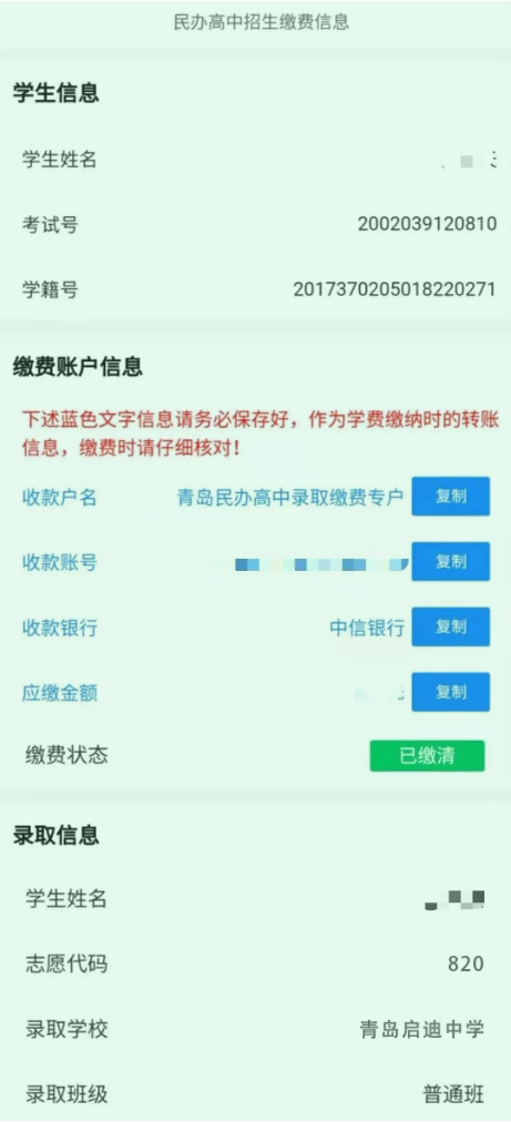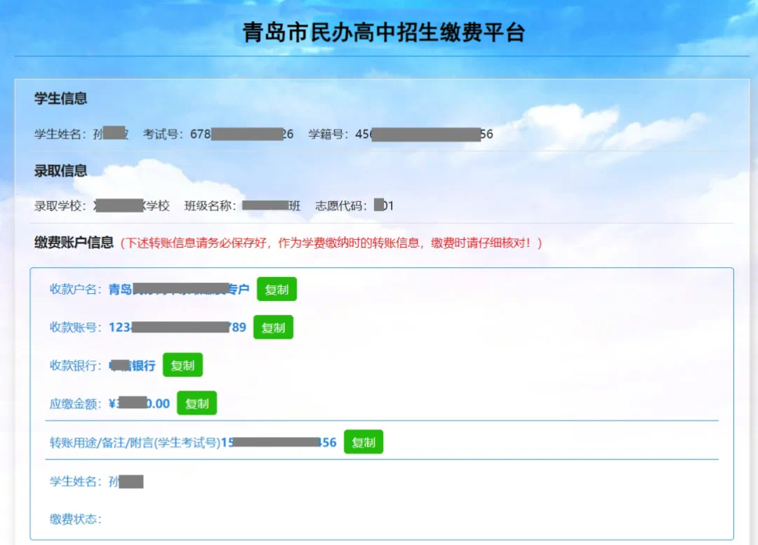 青岛2025年民办高中招生缴费注意事项+缴费操作流程