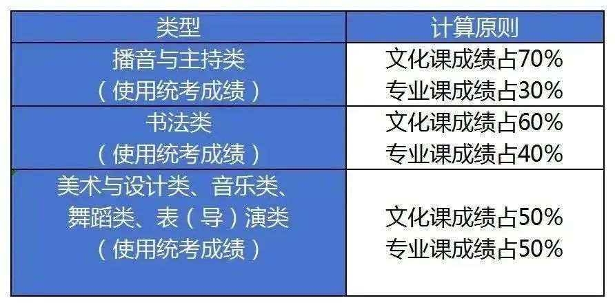 艺术类考生的综合分是由考生的文化课*和专业*按一定的比例计算的,不同的院校综合分的计算方式、文化课专业课*的比例并不相同。