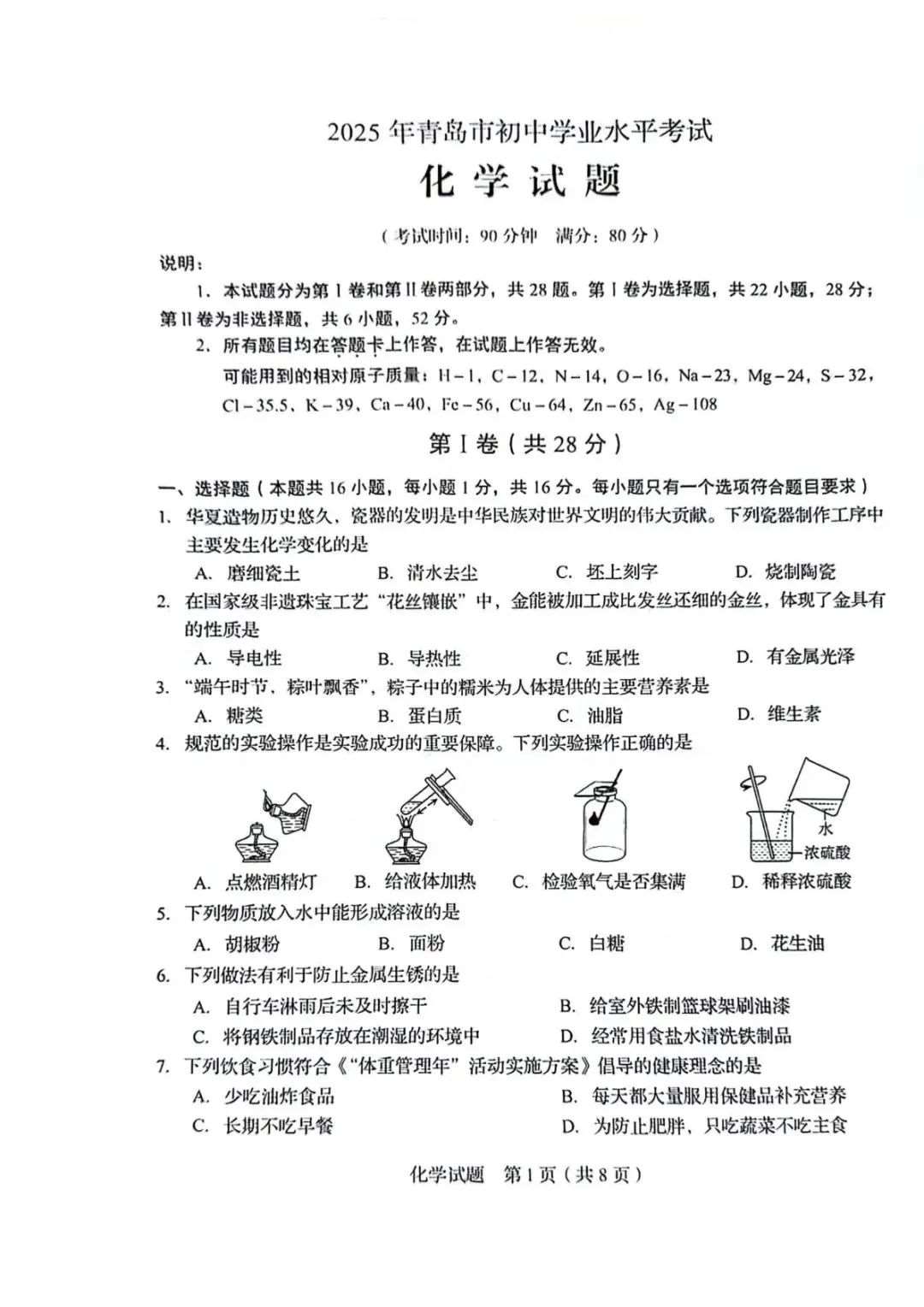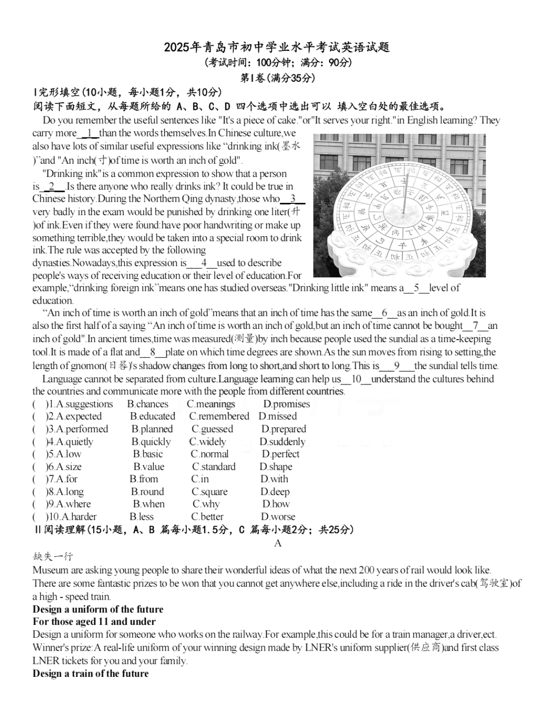 青岛2025年最新中考真题下载