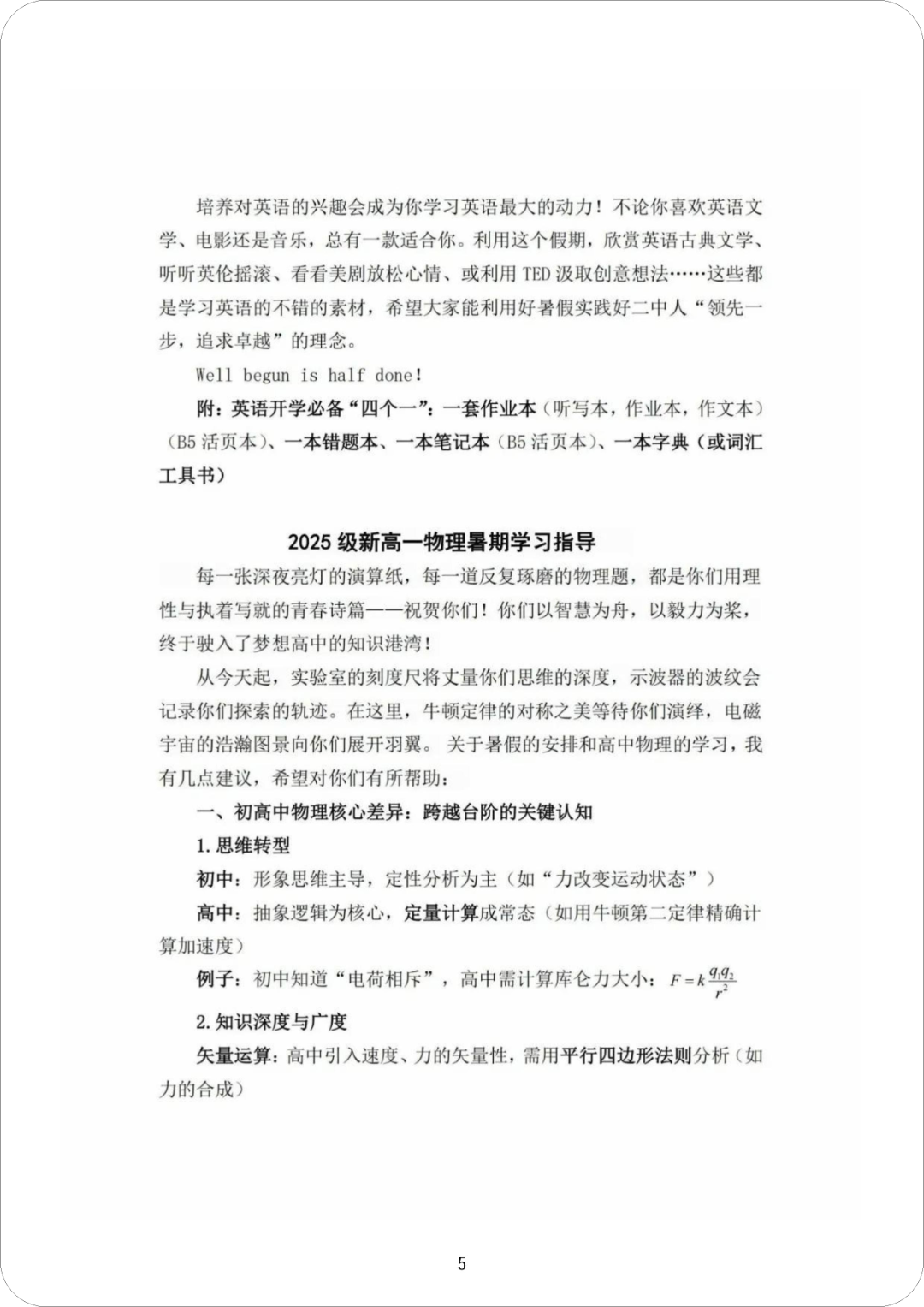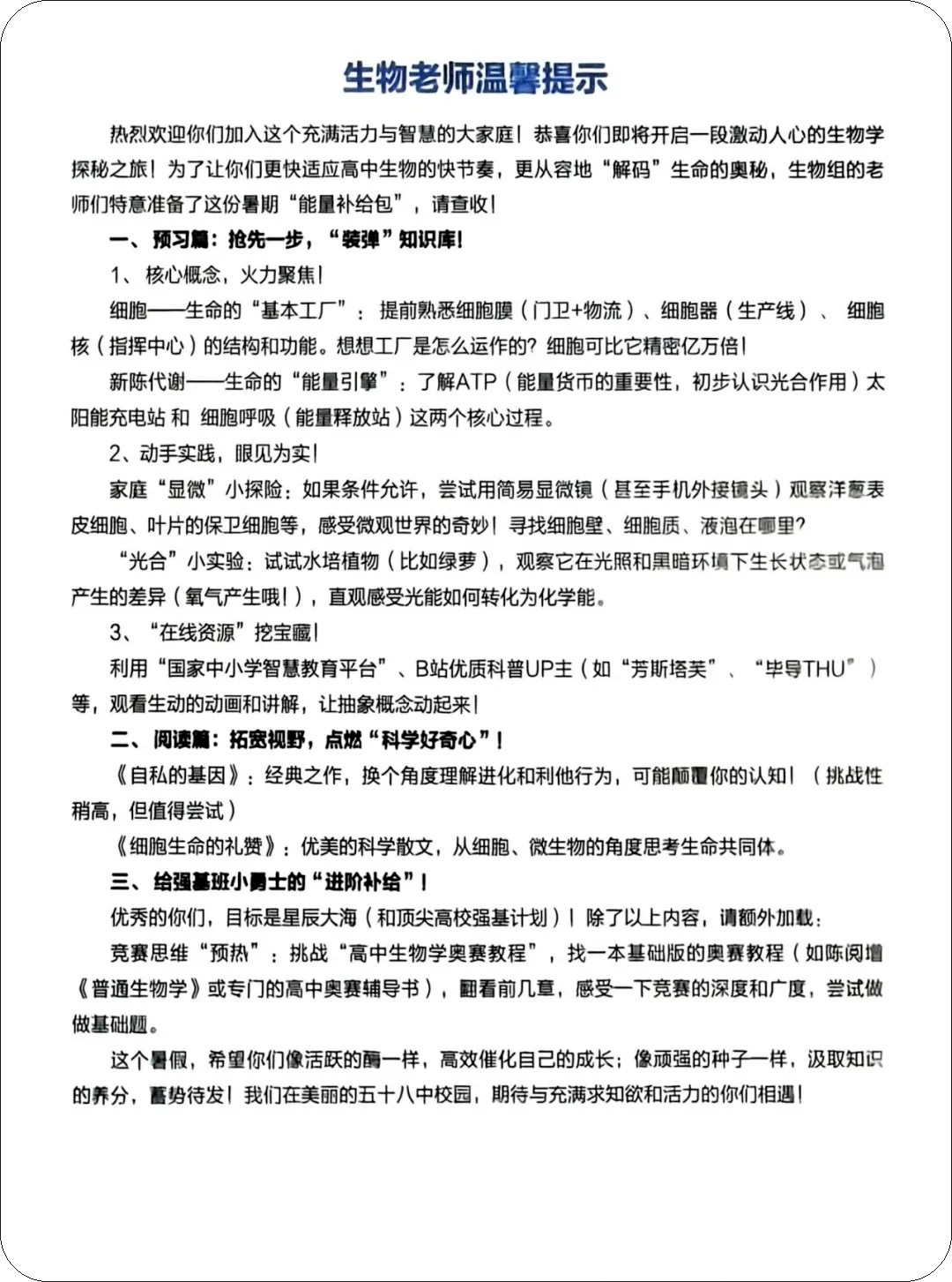 官方发布!新高一暑期如何衔接规划?速看二中和五十八中的暑期指导手册!