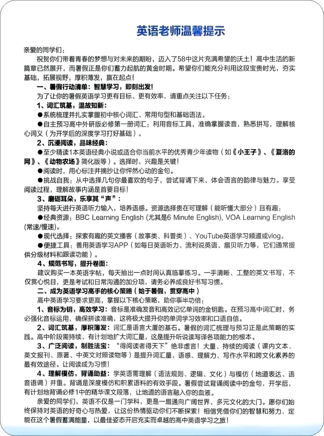 青岛五十八中暑期学习指导