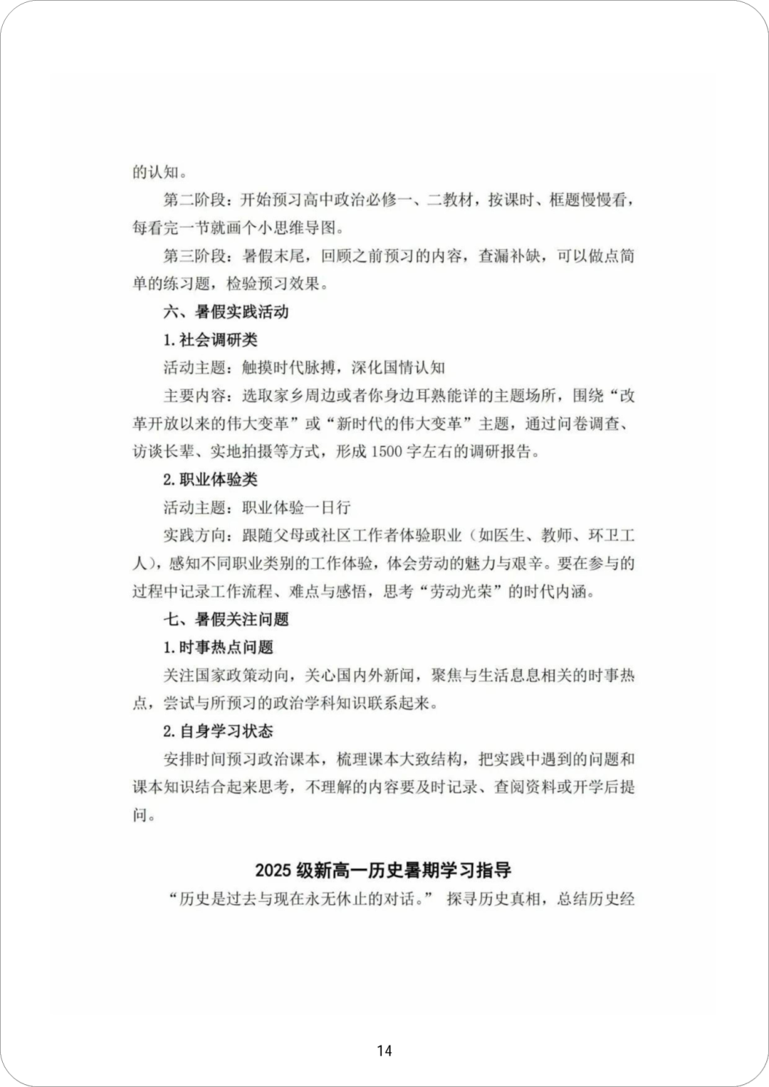 而二中则推荐学生写“社会调查报告”、当一回“职业体验者”,去实际感受社会、理解时代。