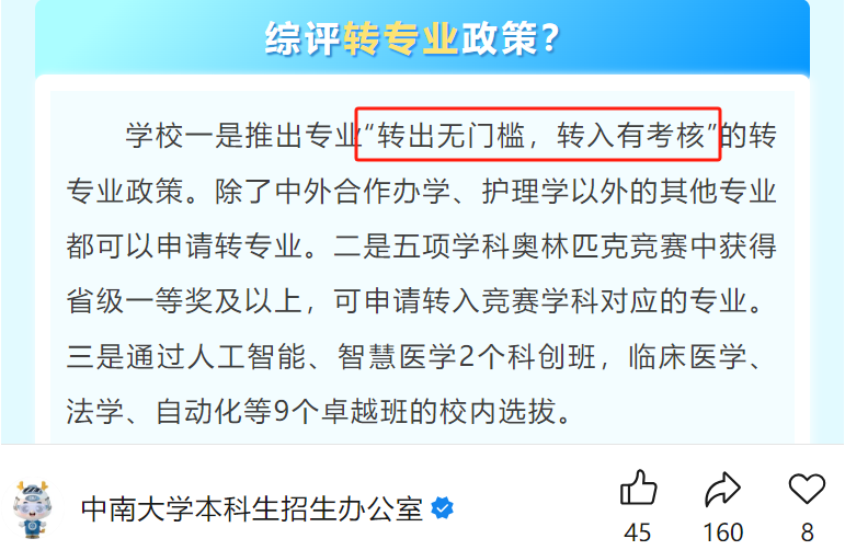 中南大学2025综评转专业政策