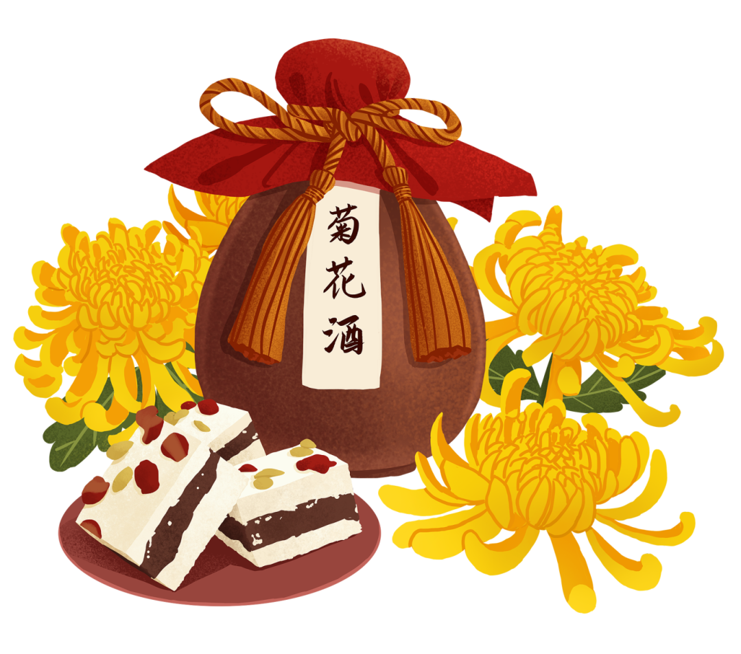 菊花酒具有清热解毒、明目祛火之功效,被誉为 “延寿客”。古时的菊花酒,讲究头年重阳节时酿制,等到来年重阳节再饮用。