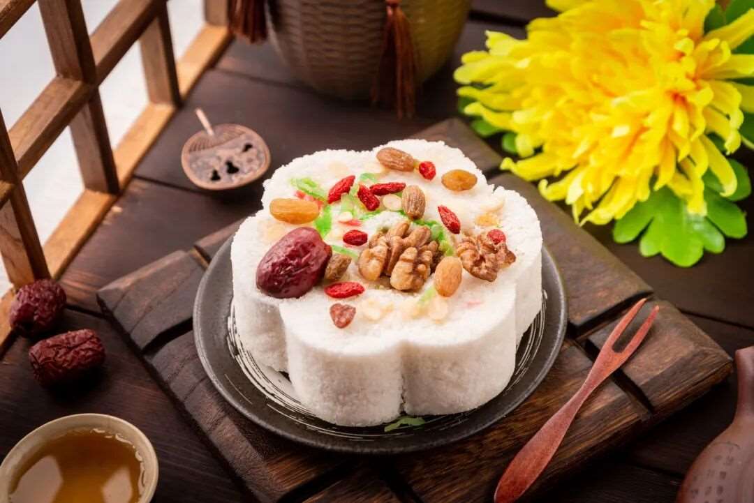 讲究的重阳糕要做成九层,上面还做成两只小羊,以符合重阳(羊)之意。