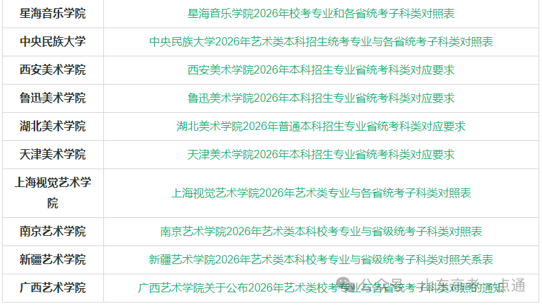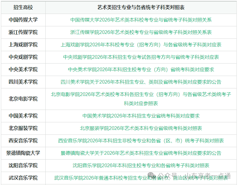 2026 艺考生择校指南:高校专业与各省统考子科类对应要求已出炉