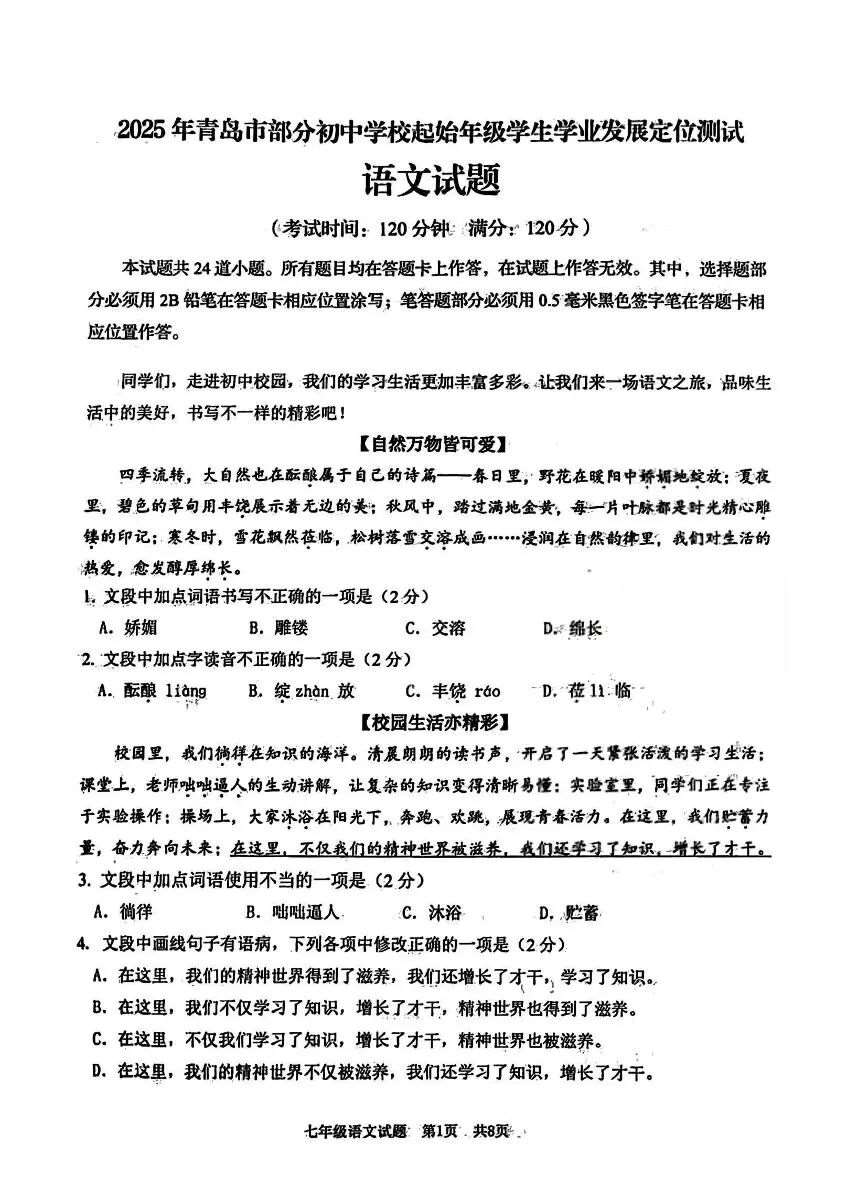 2025 青岛初一语文定位考刚考完,这套卷子的出题方向有啥变化?