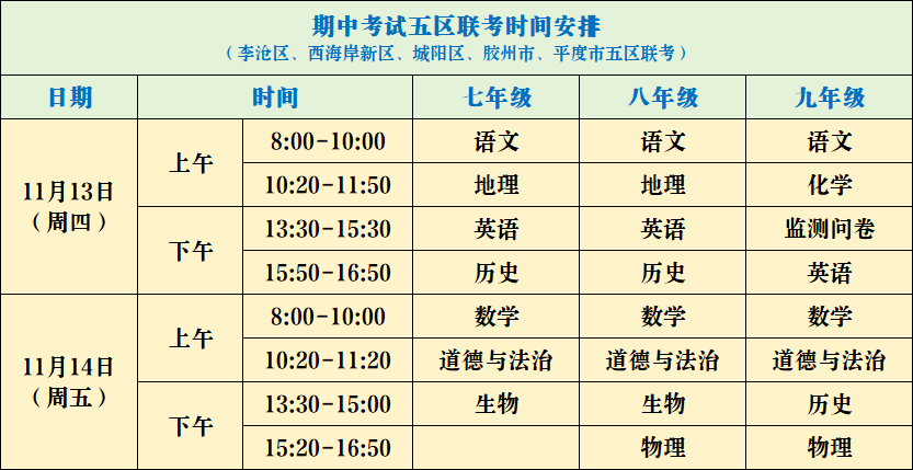 注意!五区期中联考安排出炉,部分学生要闯 “连续两场” 难关
