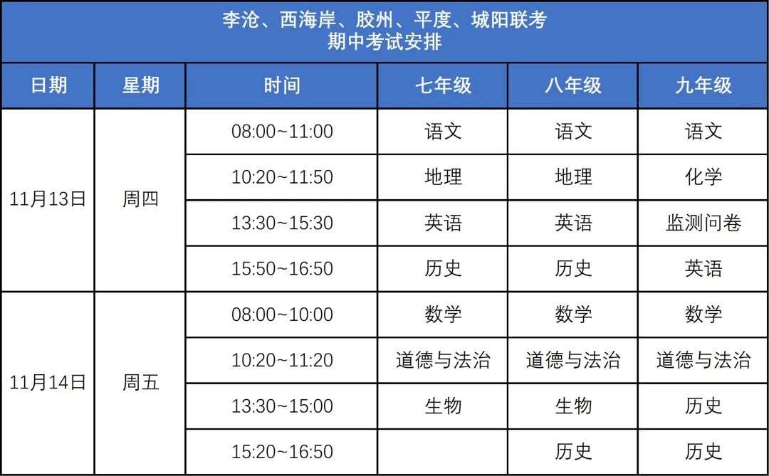 最新消息!今年李沧、西海岸、胶州、平度和城阳的初一、初二、初三三个年级的期中考试将“五区联考”!