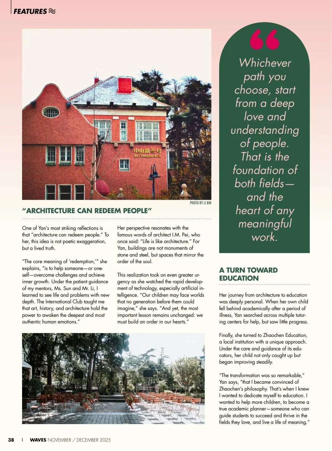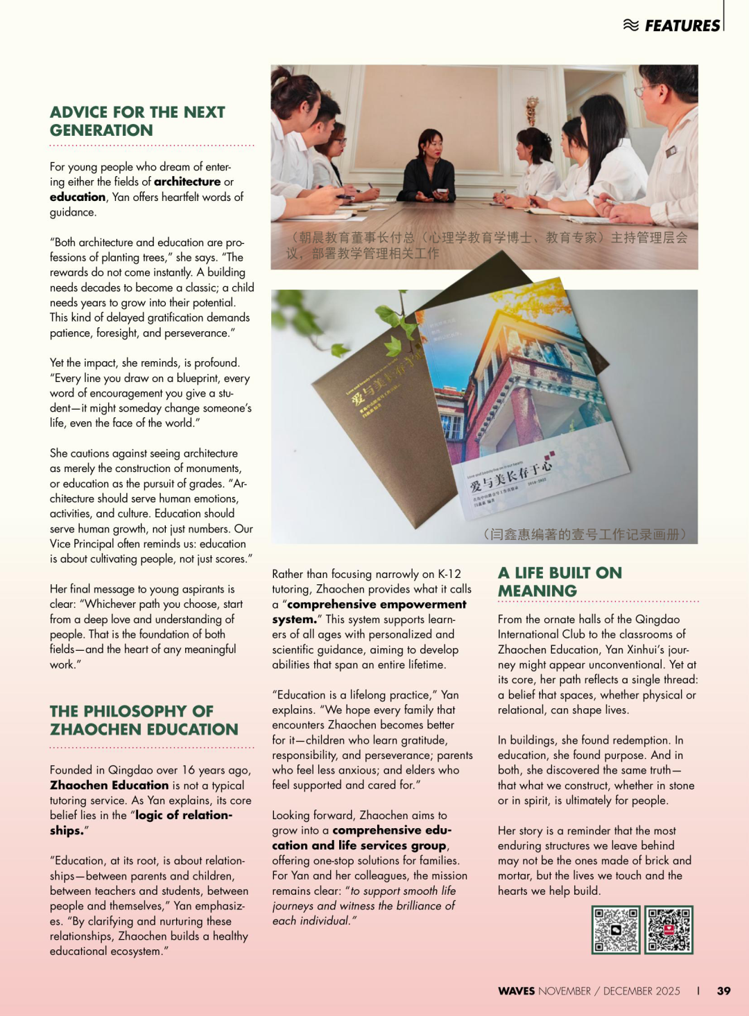 注:《浪潮》杂志是一份倡导独立思考与深度反思的优质刊物,聚焦多元领域的价值探索与人物故事,通过挖掘不同行业从业者的成长轨迹,传递有温度、有深度的人生洞察,本次专访将闫鑫惠的跨界经历与教育理念纳入专题报道,为读者呈现一场关于「渡人」与「成长」的深度对话。