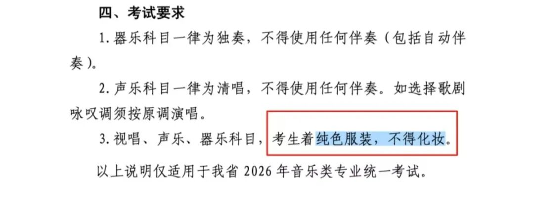 2026年新规,音乐类、舞蹈类、播音主持类、戏剧影视表(导)演服装有新要求: