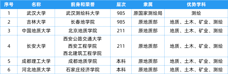 地质类相关院校共有6所,层次、隶属及优势等具体信息可以参考下表~
