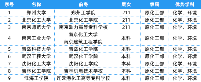 化工部相关院校共有9所,层次、隶属及优势等具体信息可以参考下表~