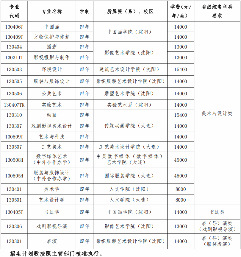 (一)艺术类校考专业面向全国招生,不编制分省计划,实行文理科(历史学/物理类)兼招。