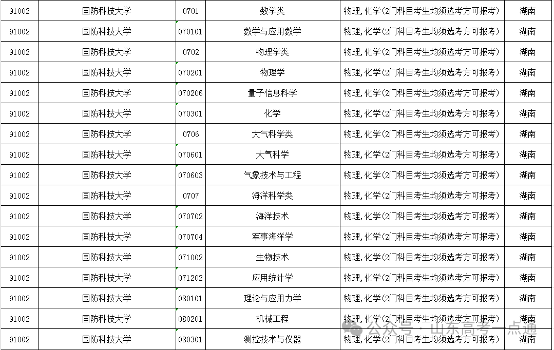 可以看到,在《2027通用版普通高校拟在山东招生专业(类)选考科目要求》中,国防科技大学共108个招生专业。其中,38个语言类专业不提科目要求;政治学类、外交学、国际事物与国际关系3个专业要求必须选考思想政治方可报考;其他67个专业全部要求物理、化学同时选考方可报考。
