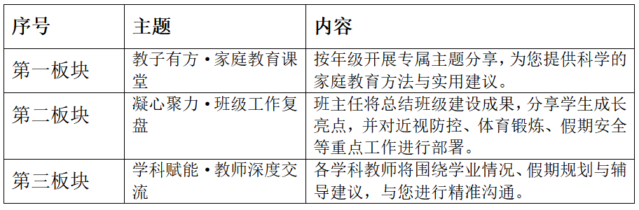 参会人员:全体家长(尽量父母其中一员)