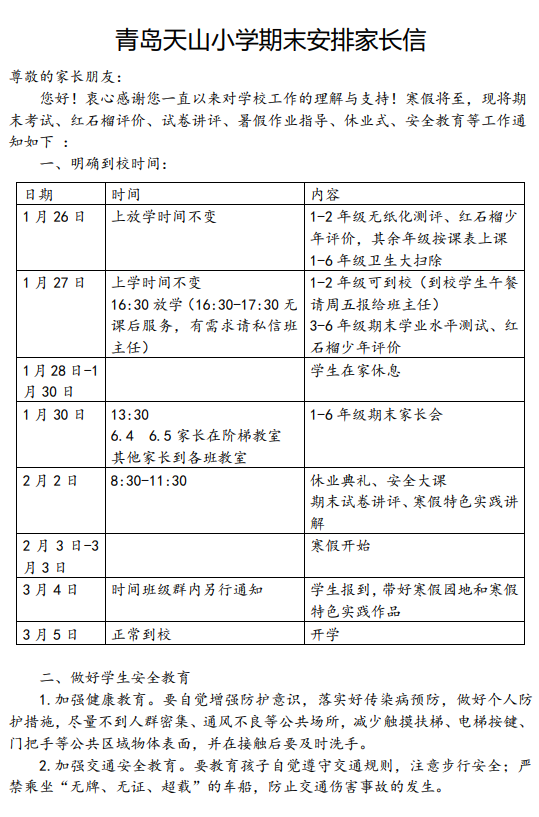 !青岛小学寒假前重要通知,家长会安排汇总
